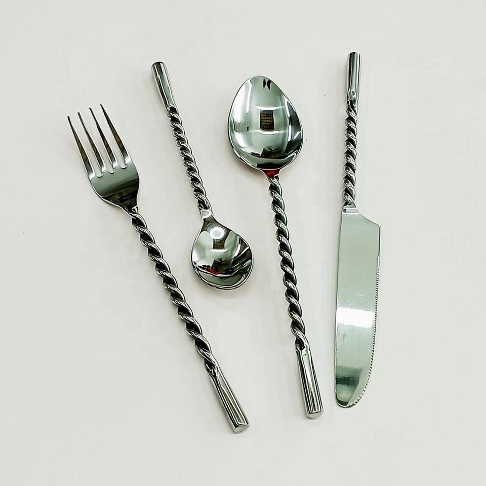 Nouvel ensemble de couverts Portugal avec logo personnalisé à vendre avec ensemble d'ustensiles uniques à poignée torsadée en plaqué argent