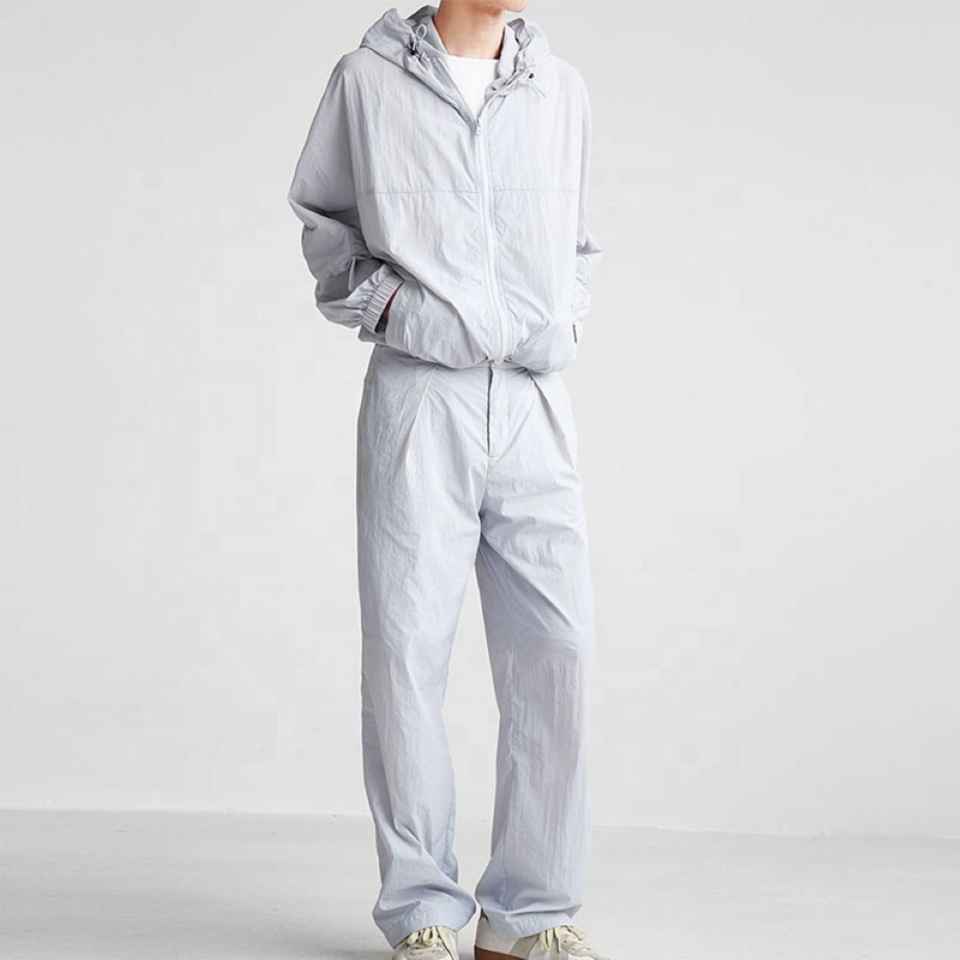 Nouveau logo personnalisé survêtement coupe-vent réfléchissant en nylon de jogging pour hommes prix bon marché ensembles coupe-vent en nylon uni coupe ajustée pour la gym