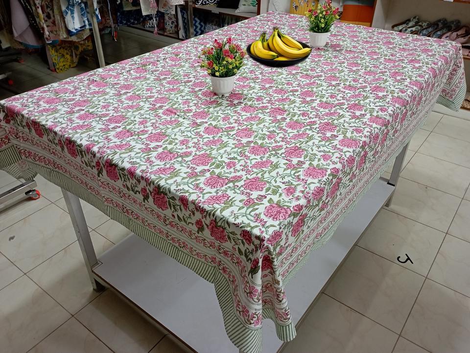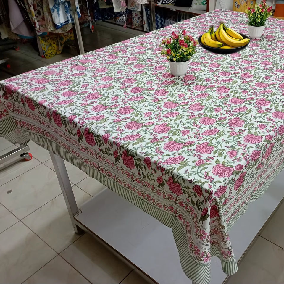 Nouvelle nappe en coton rose faite à la main, imprimée au bloc, écologique et lavable, design moderne pour mariage, fête et maison