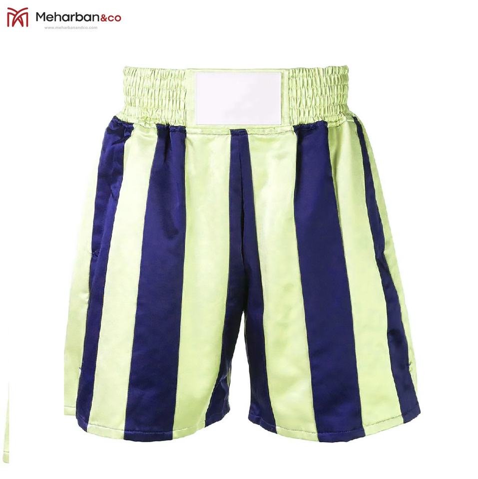 Nouveaux shorts de boxe personnalisés OEM en tissu soyeux et doux, à rayures, respirants