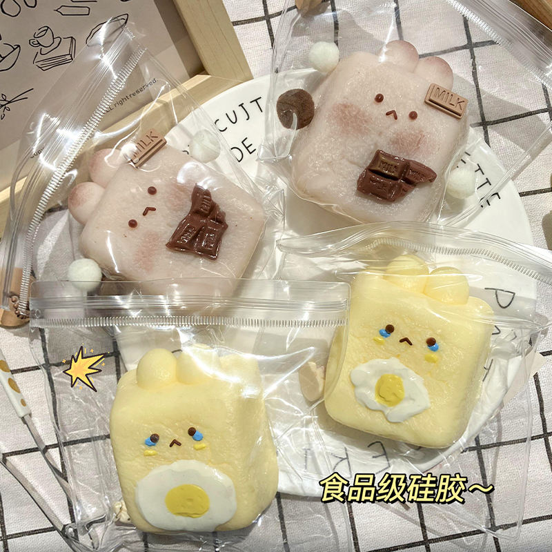 Nouveau jouet en silicone mignon en forme de lapin, œuf frit et gâteau de riz cuit, doux et collant, pour soulager le stress et l'anxiété