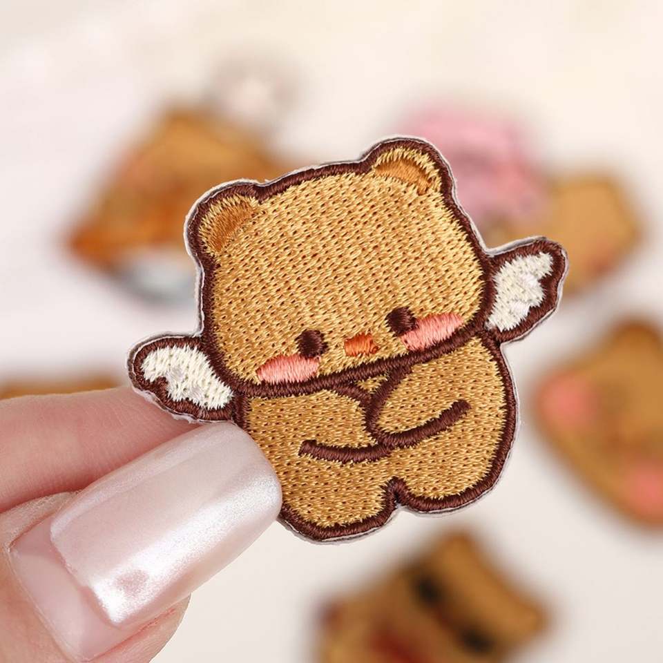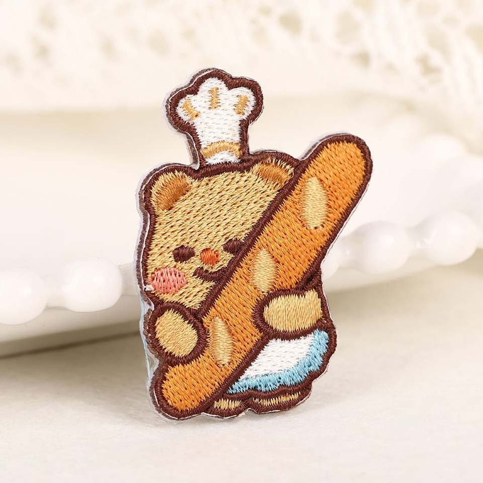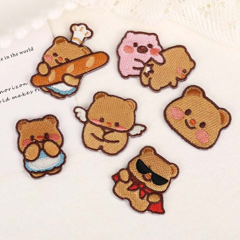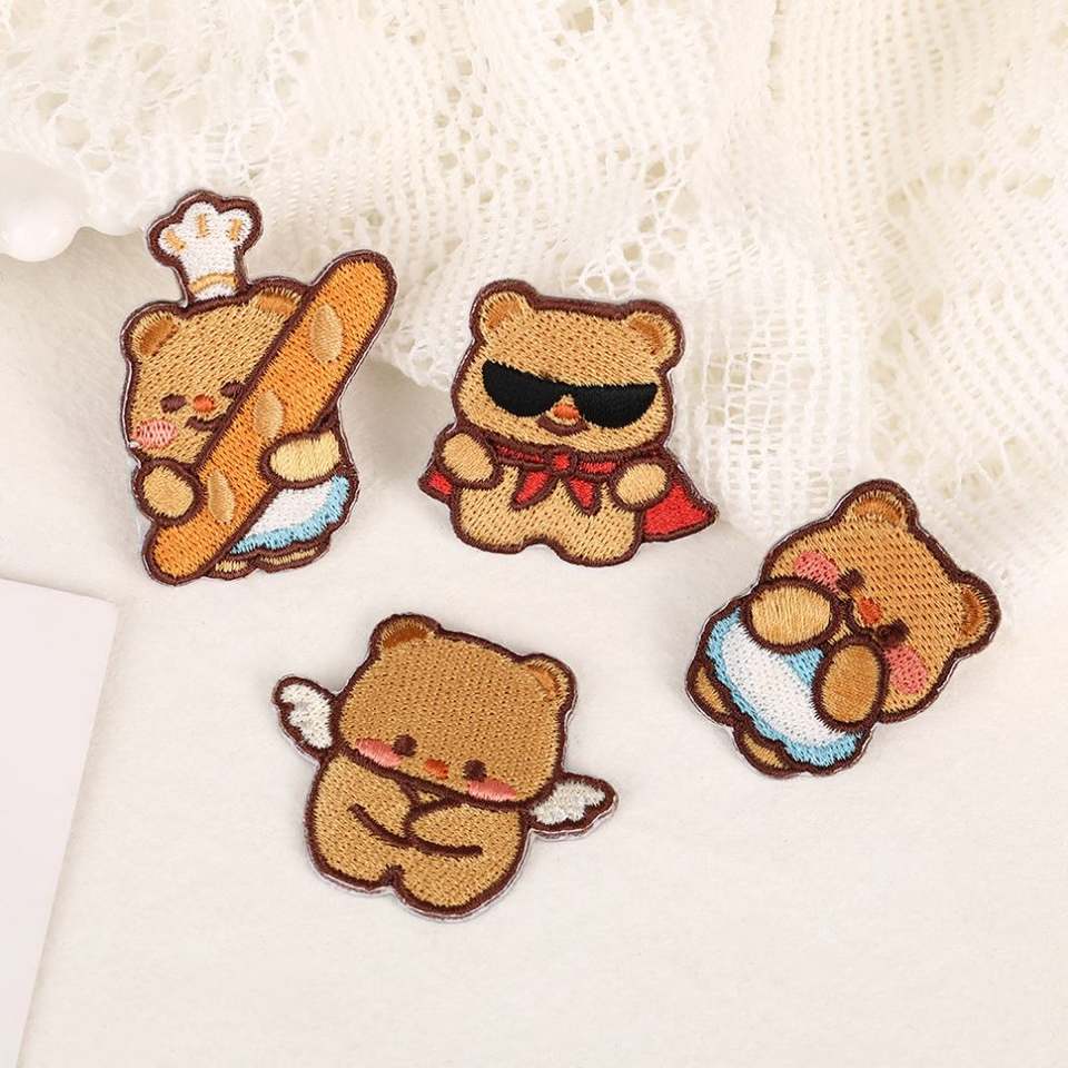 Nouvelle broderie autocollante mignonne en forme d'ours en pain beurre, mini 2,9*2,5 cm, pour la décoration