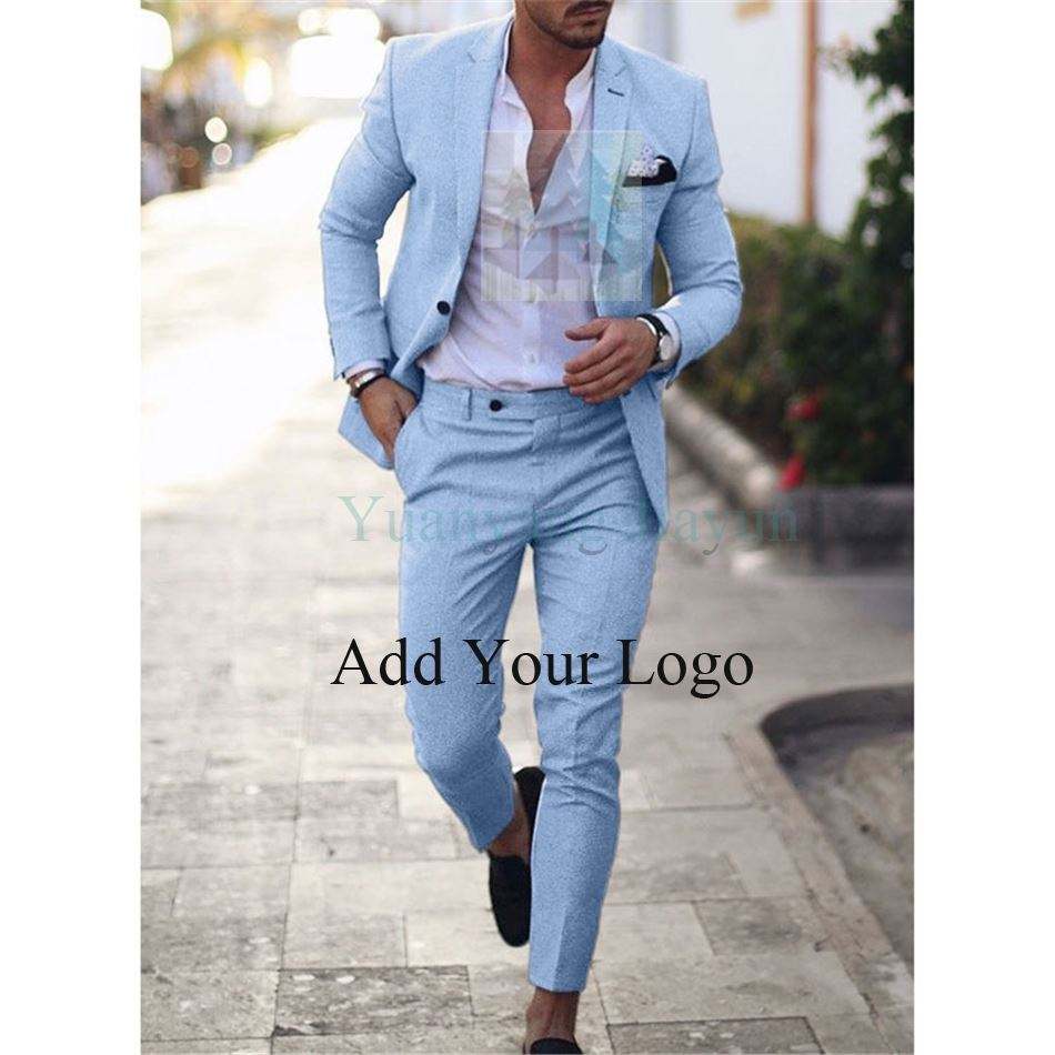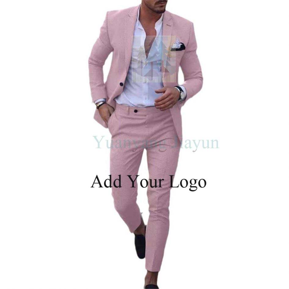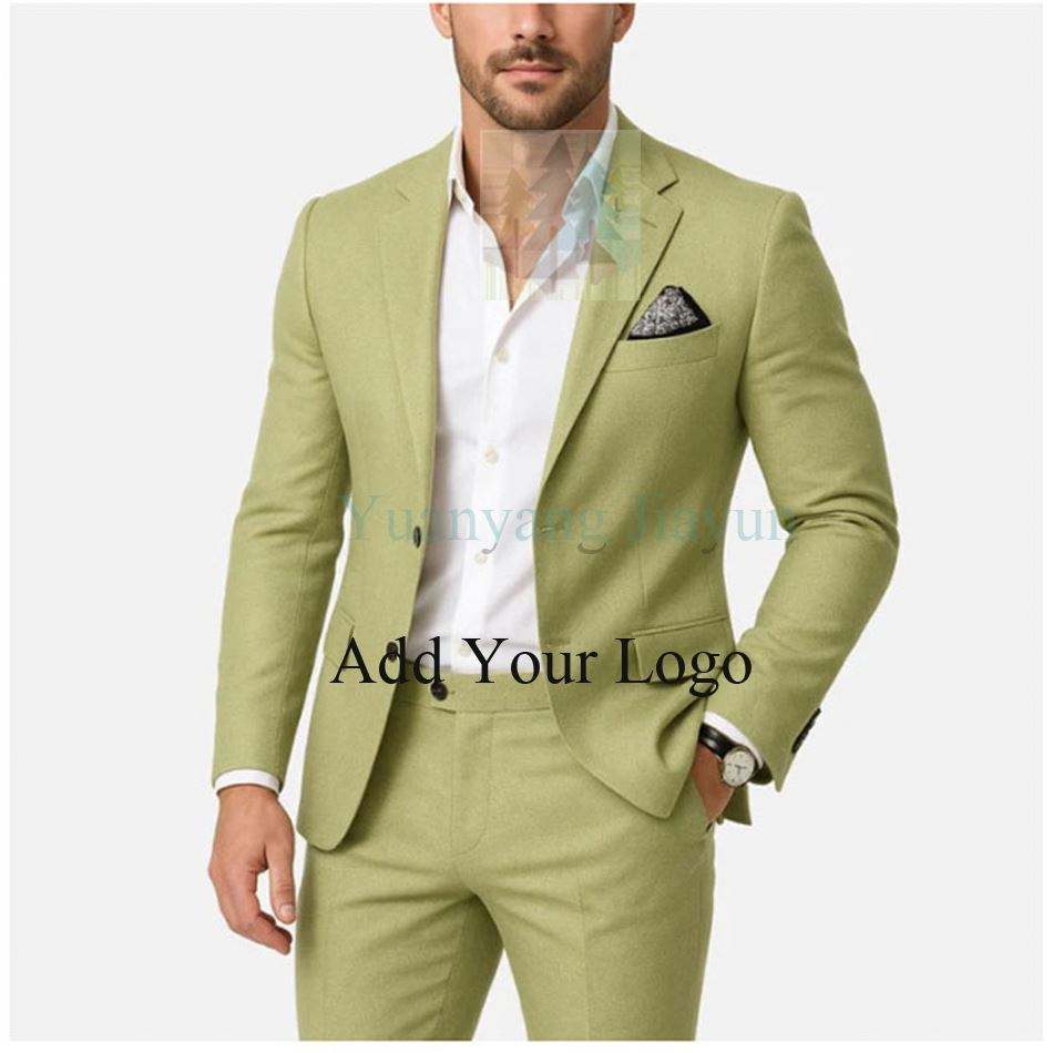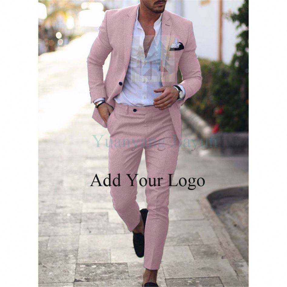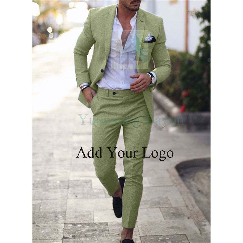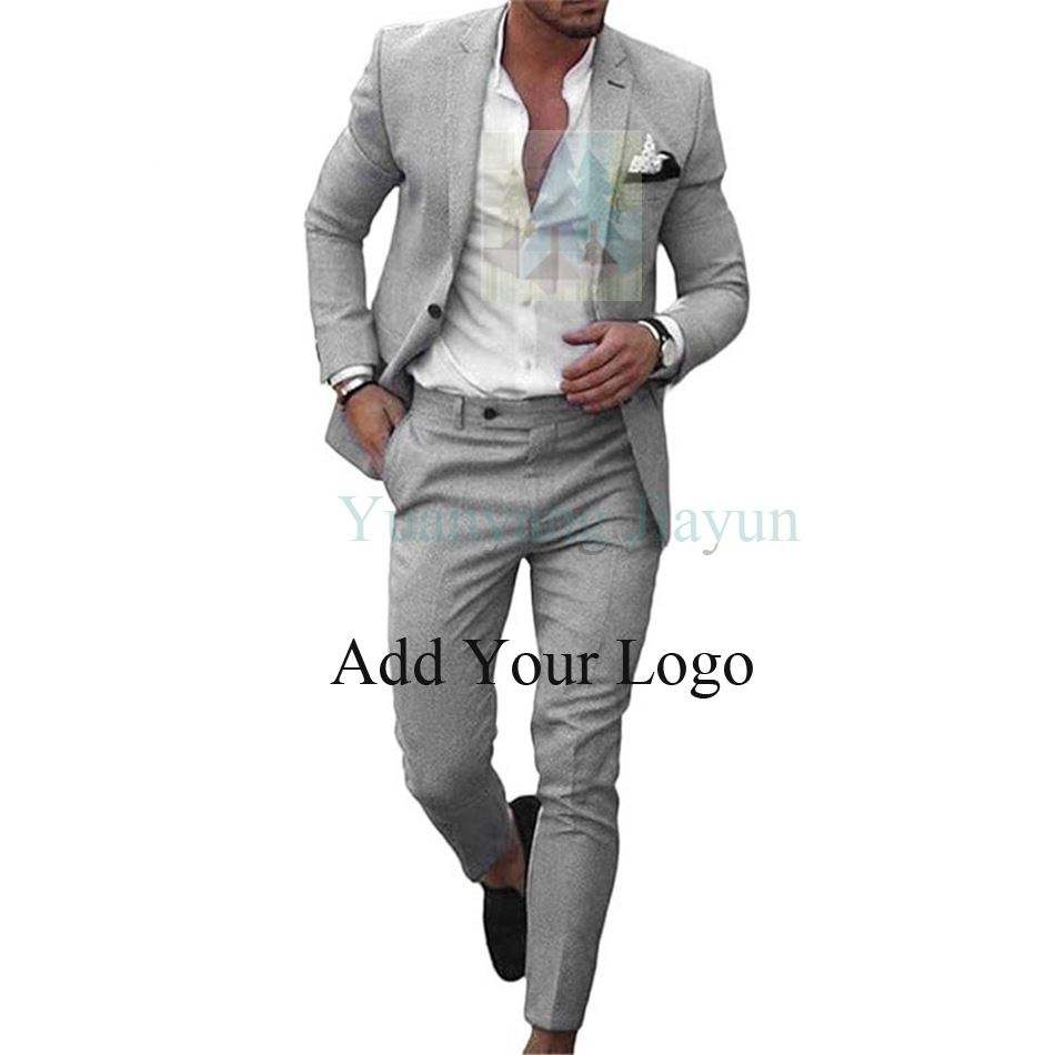 Nouveau design hommes costume deux pièces bouton lin coton lin couleur unie croisé costume hommes