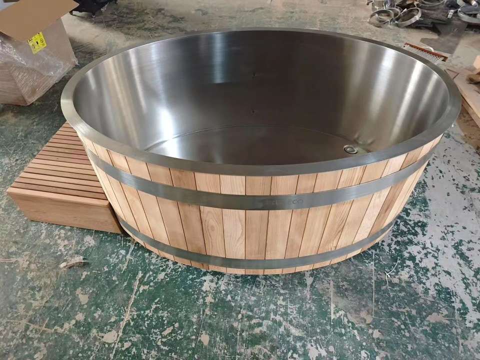 Nouvelle conception - Baignoire ovale en cèdre rouge pour 1 à 2 personnes avec doublure en acier inoxydable 304