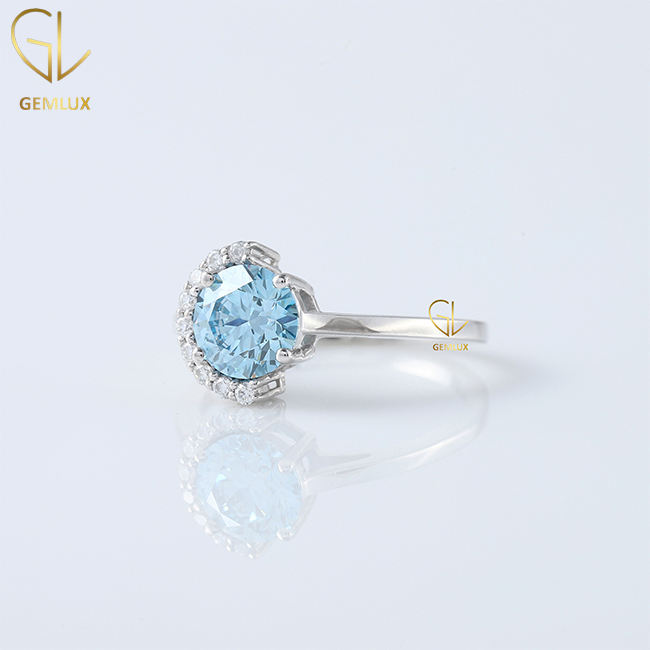 Nouveau design 1 CT CVD coupe ronde bleu certifié diamant demi Halo Solitaire bague de fiançailles pour les femmes