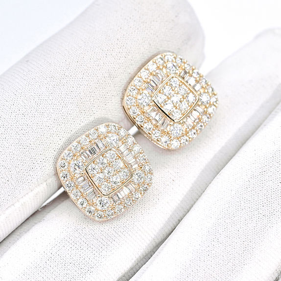 Nouveau Design 10K 14K Solid Gold Vvs Moissanite Stud Earring Iced Out Baguette Cut Vvs Diamond Gold Plated Fine Jewelry Boucles d'oreilles