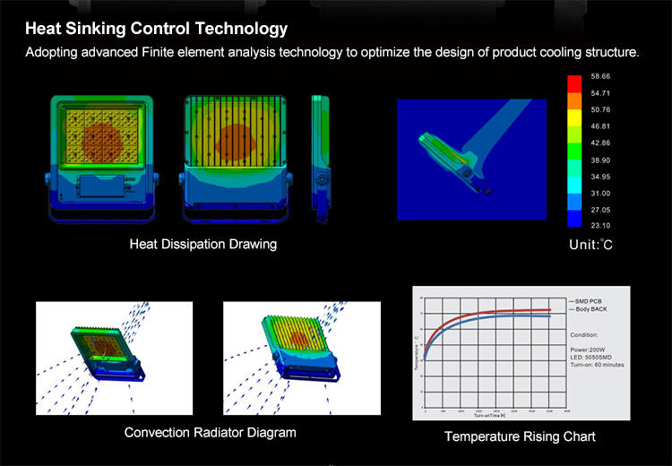 Nouvelle conception 150lm/W projecteur extérieur en aluminium IP66 50w 200W 400 500w 600 Watt a mené la lumière d'inondation avec le cadre noir gris
