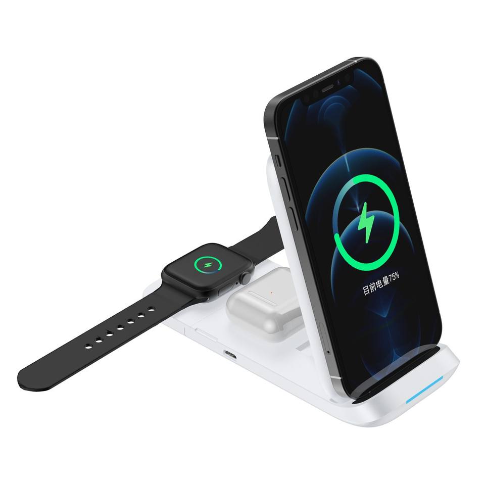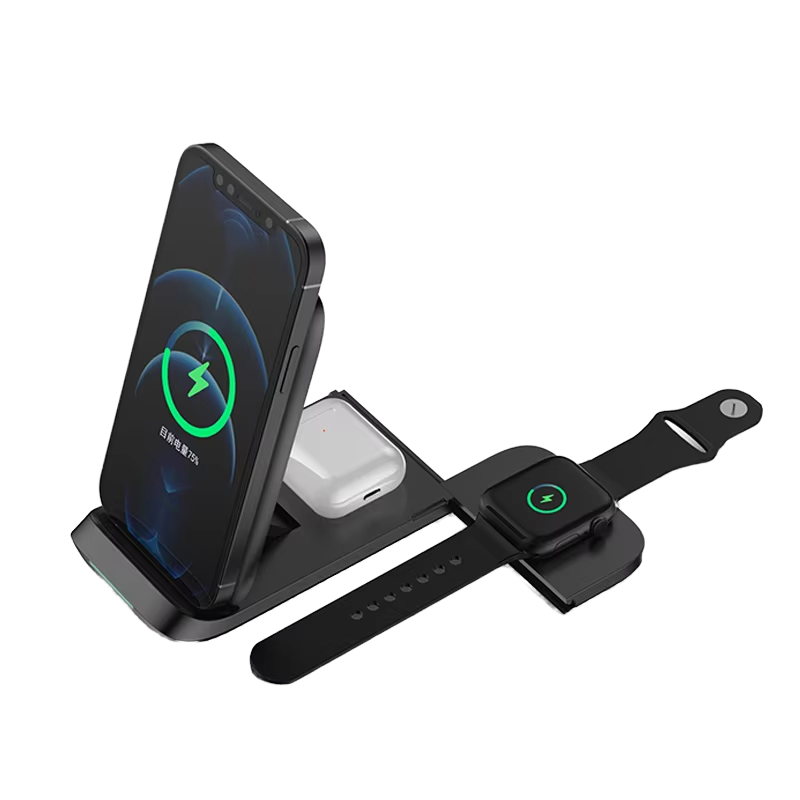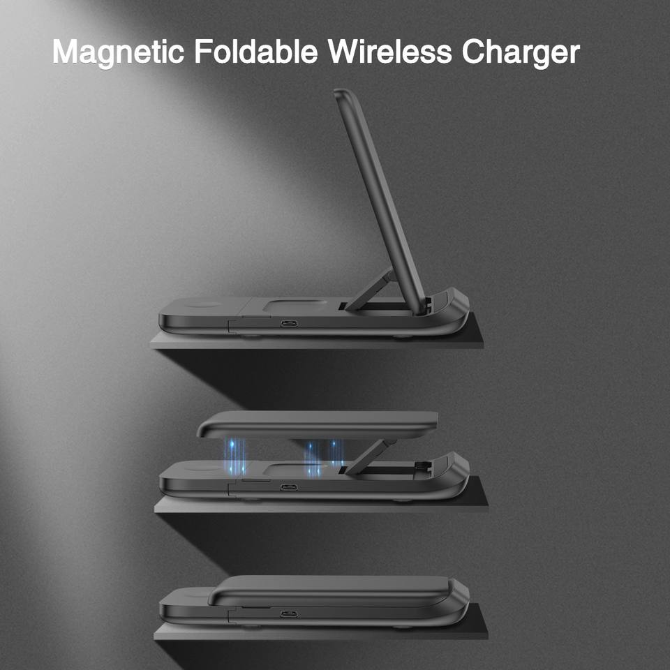 Chargeur sans fil rapide 15W de nouvelle conception, support de téléphone pliable magnétique V8, chargeur de montre à pousser-tirer, station de charge sans fil 3 en 1
