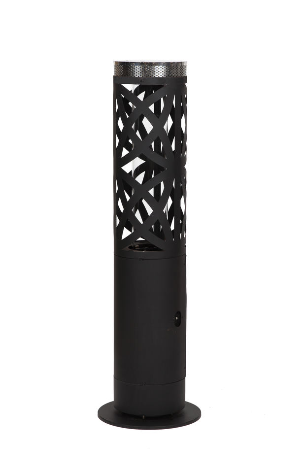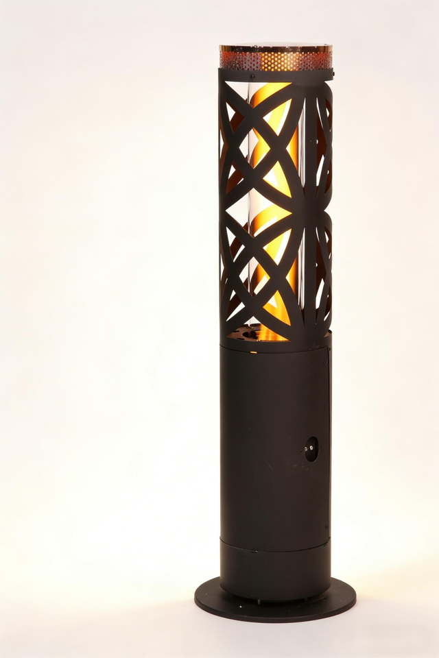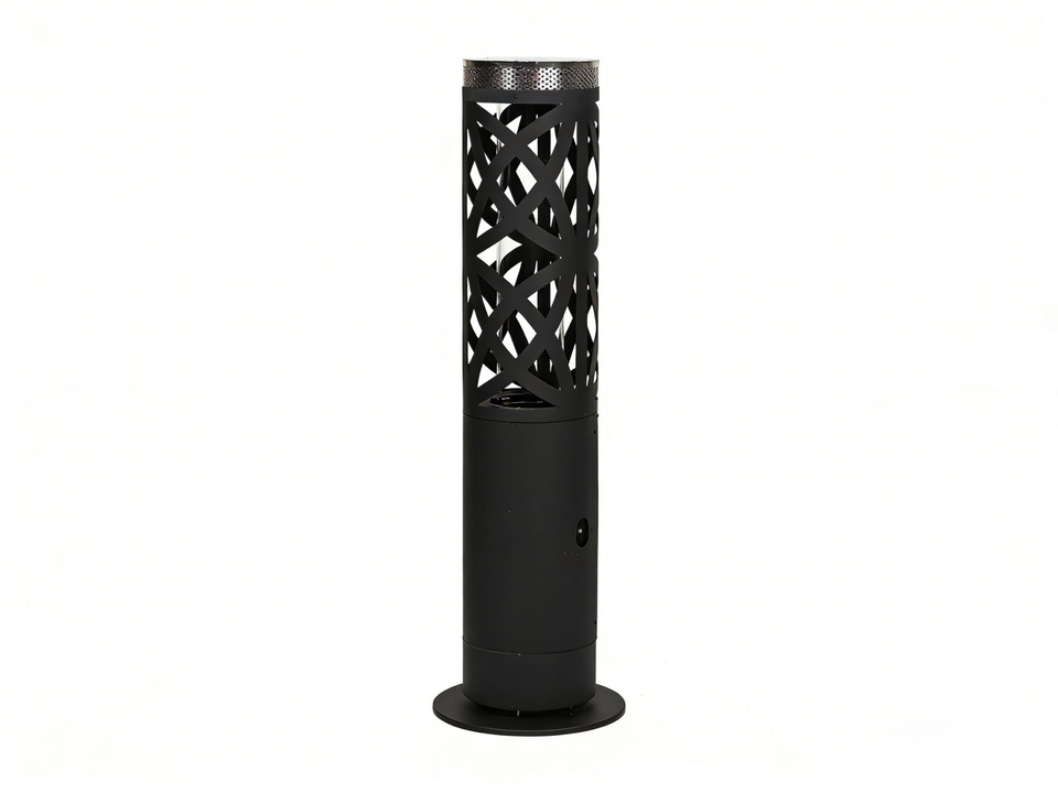 Nouveau design – Chauffage à granulés de bois écologique 1M, noir, petit et léger, avec flamme en verre, sur pied pour extérieur