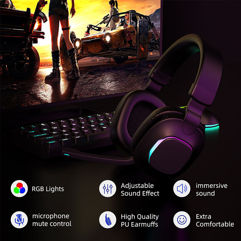 Nouveau design, casque de jeu sans fil 2,4 GHz, casque Bluetooth pour joueurs, pour PC, PS, PS5, PS4, téléphones