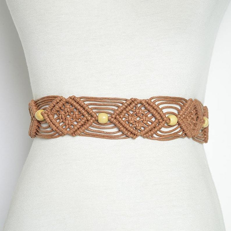 Nouveau Design 2024 été et printemps Style bohème à la mode coloré tricoté coton macramé ceinture pour les femmes