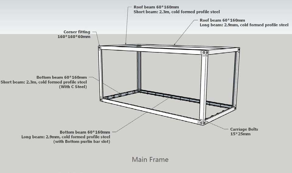 Structure:Galvanlized Steel Frame + Sandwich Panel