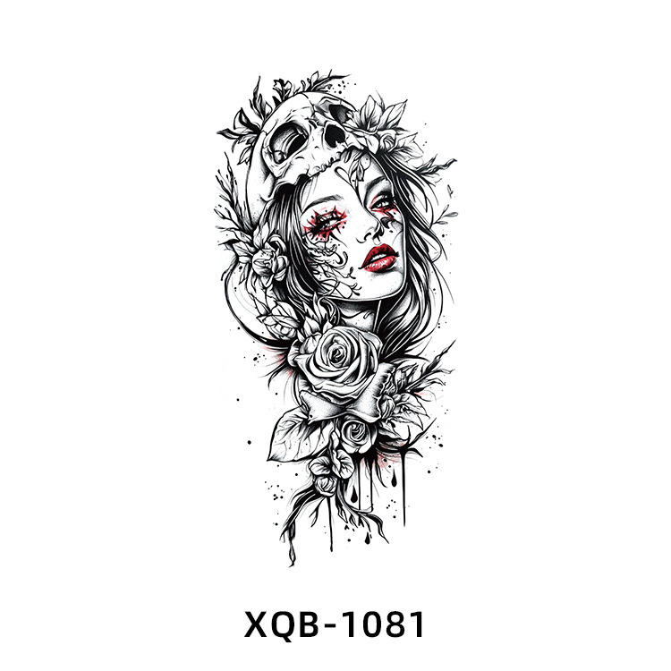 Nouveau Design Tatouage Temporaire Réaliste Noir 3D Feu Lion Tigre Loup Fleur Crâne Halloween Faux Autocollants Tatouages Manchon Demi-Bras
