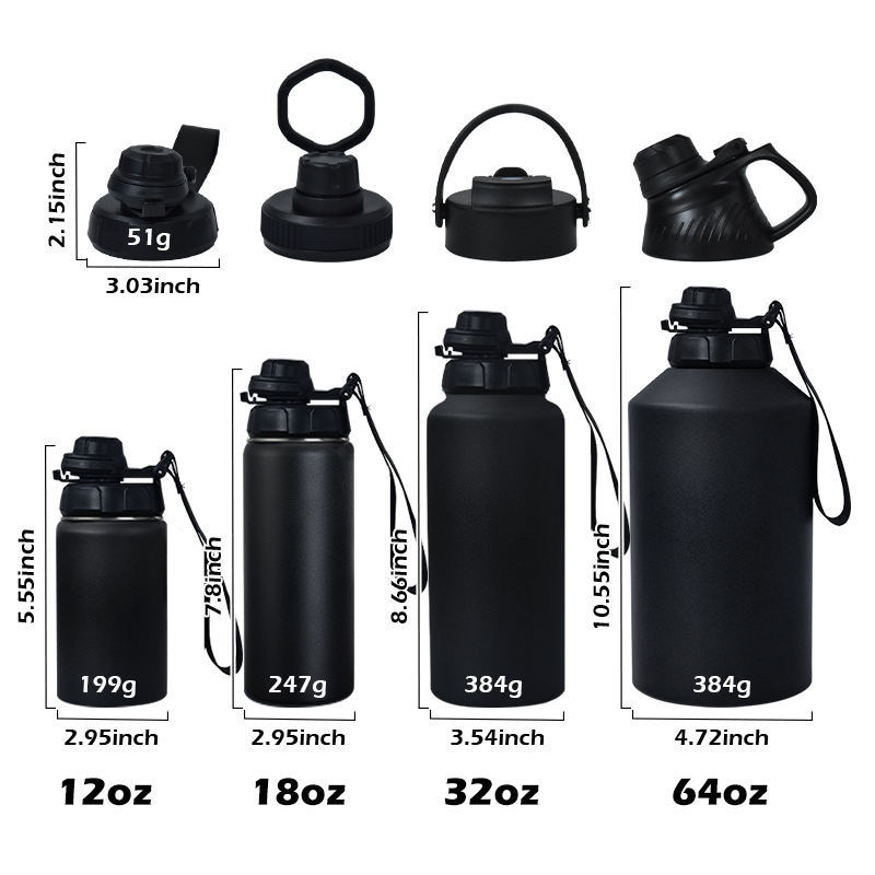 Nouvelle conception, bouteille d'eau sport en acier inoxydable de 64 oz, bol amovible, double paroi isolée sous vide 304, anti-fuite, 6-12 heures