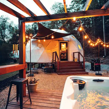 Nouveau design 8m 10m facile à installer maison dôme tente familiale avec salle de bain étanche résistance aux UV