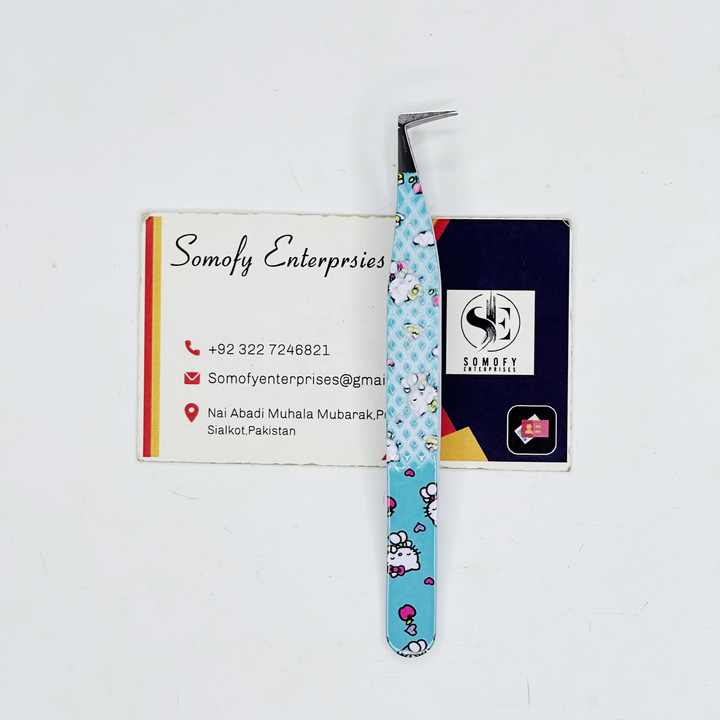 Nouveau design de pince à cils en acier inoxydable à pointe de volume de 90 degrés pince à épiler Hello Kitty Print pince à épiler personnalisable avec logo privé