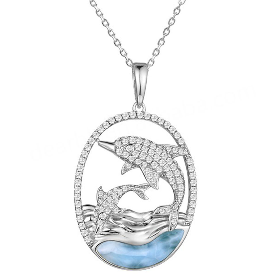 Nouveau design, pendentif dauphin en argent sterling 925, pierre naturelle bleue hawaïenne, larimar pavé CZ