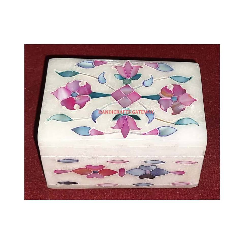 Nouvelle conception et travail artisanal attrayant en marbre blanc avec incrustation de nacre, motif floral, boîte à bijoux pour les fêtes