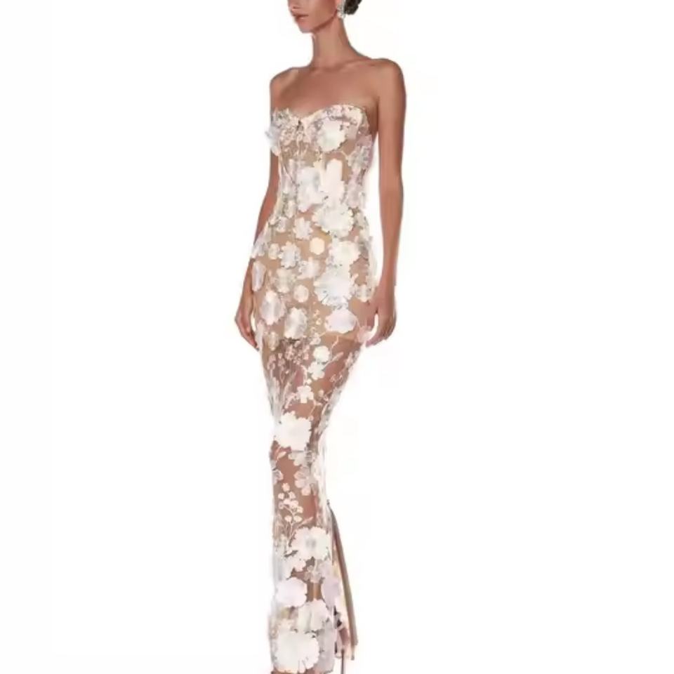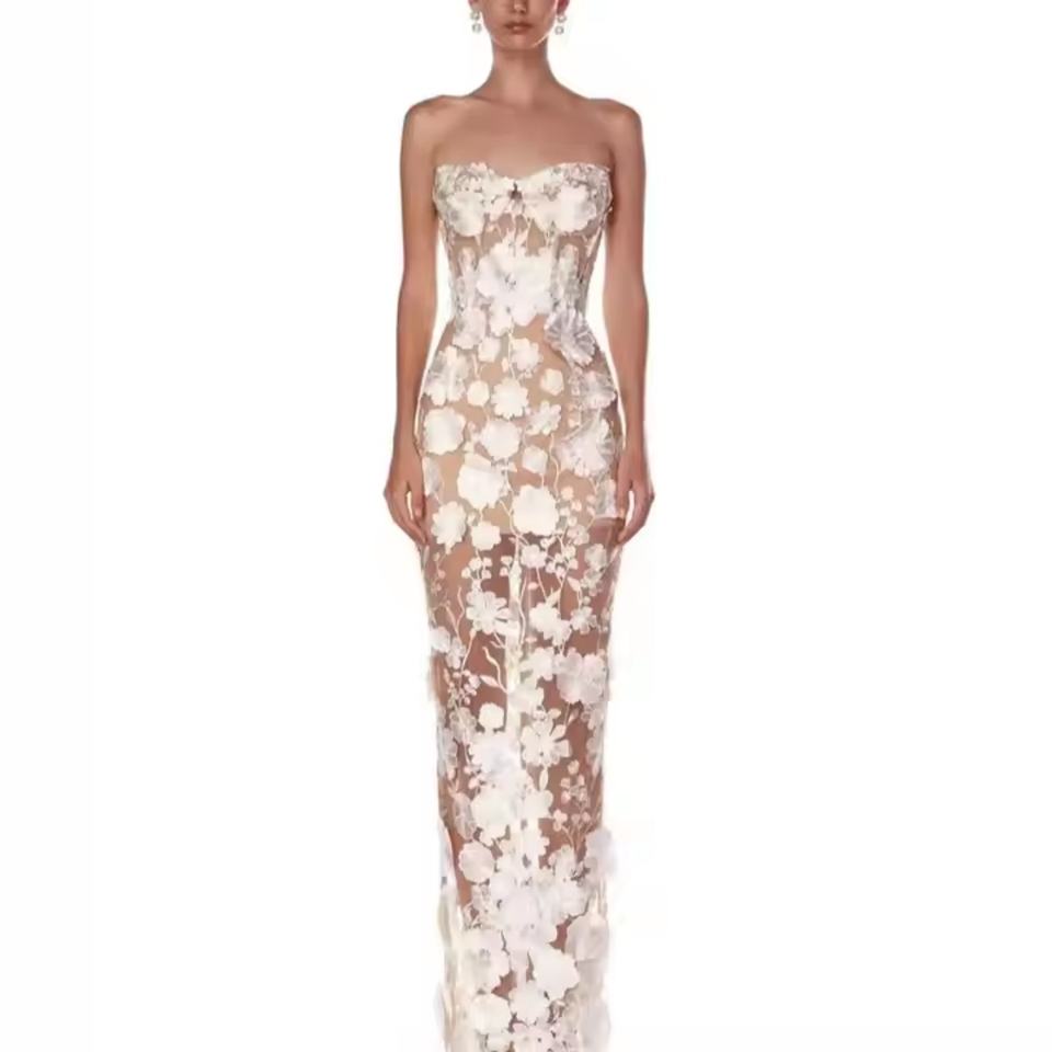 Nouvelle robe de soirée pour femme, design automne, haute qualité, sexy, sans bretelles, vintage, avec broderie florale, maxi, en dentelle