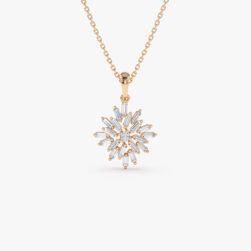Product Name:18K Solid Gold Baguette Diamond Cluster Pendant Necklace