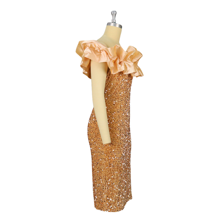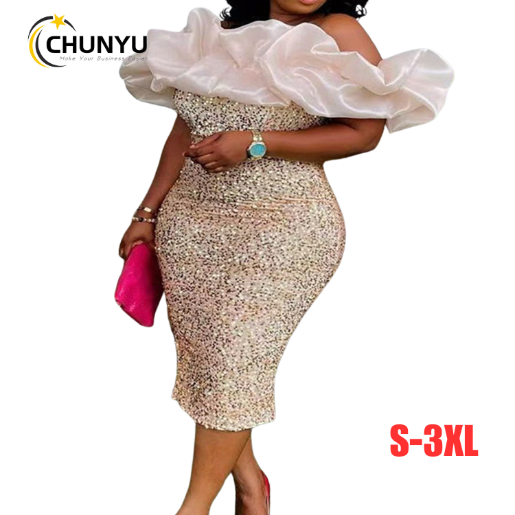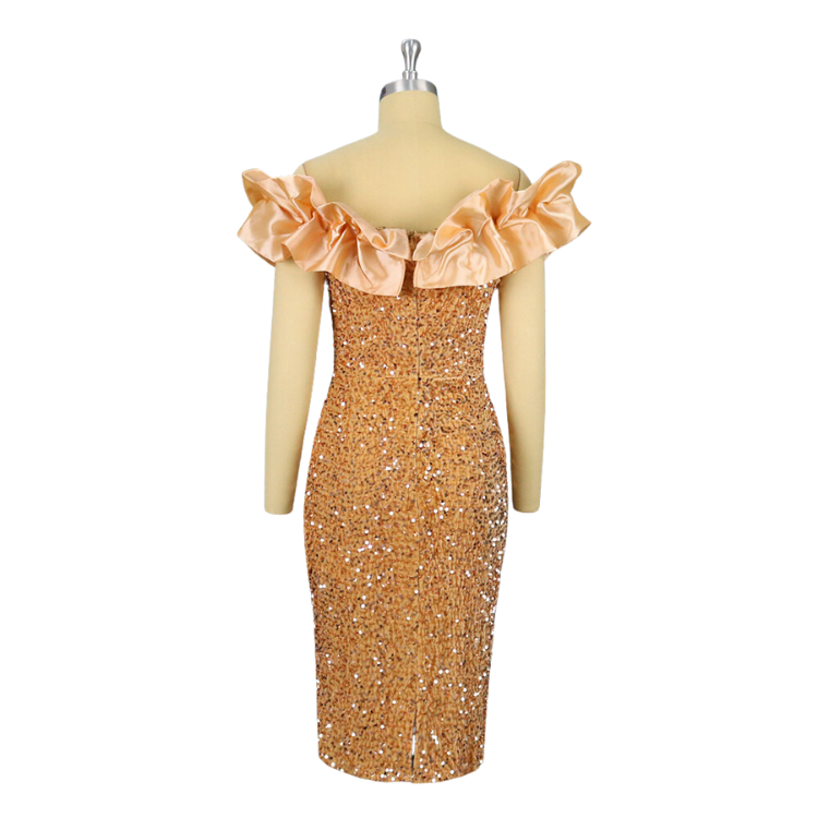 Nouveau modèle Robe de soirée à paillettes et épaules nues Robe en tulle à volants Robe de soirée dos nu pour femmes élégantes