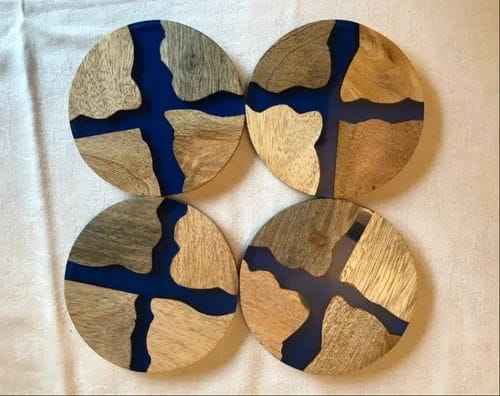 Nouveau design meilleur sous-verre en bois d'acacia en résine époxy fait à la main en bois boisson thé sous-verre de l'inde par faizacraft sous-verres en pierre