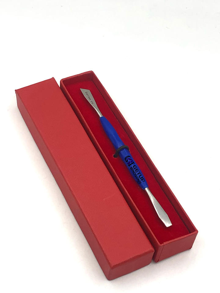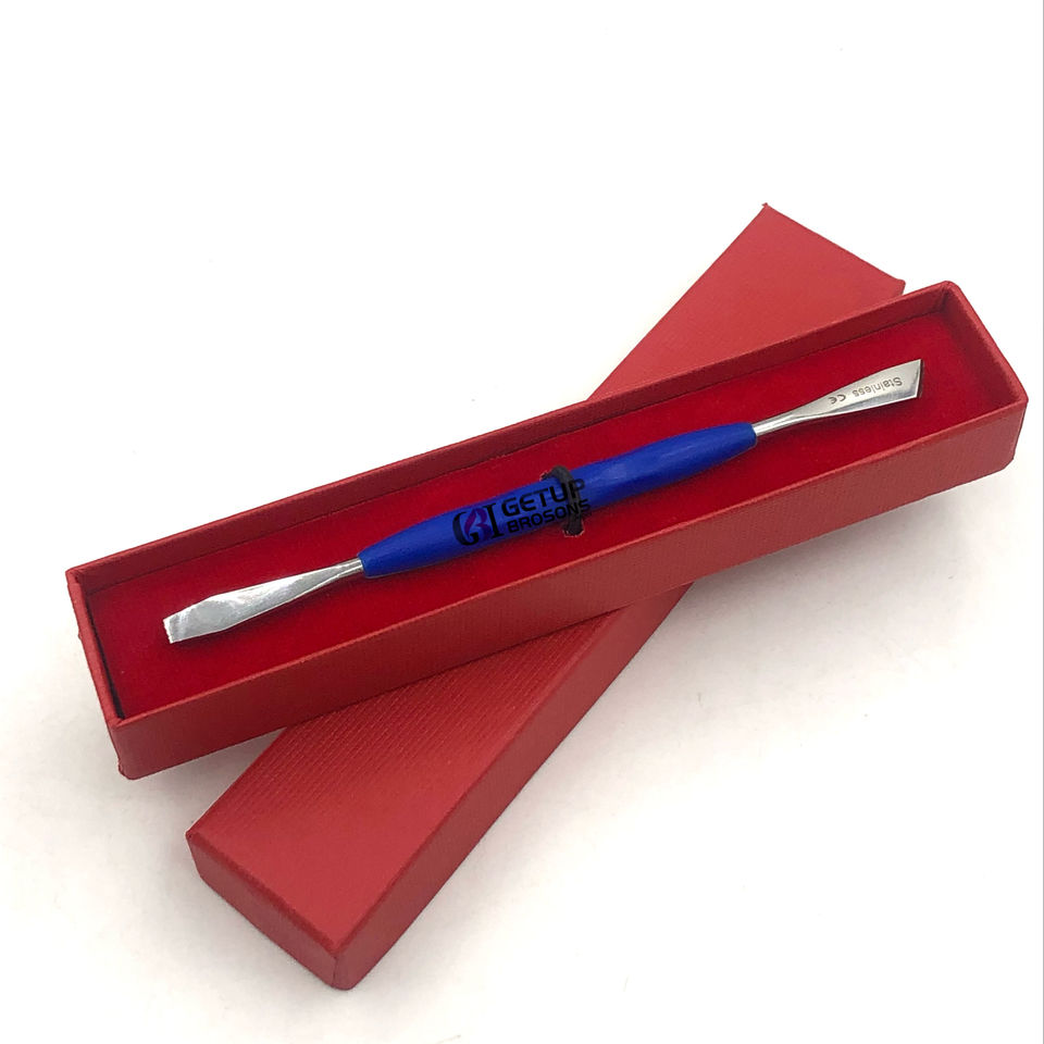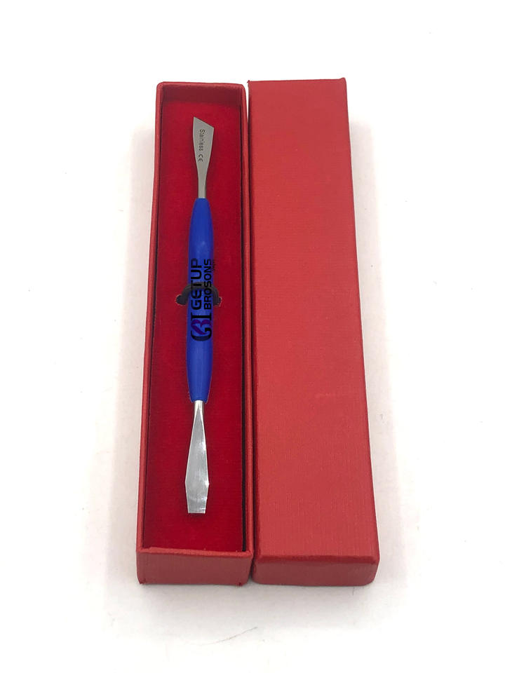 Meilleur vente en gros Nouveau design Poussoir à ongles avec manche en plastique bleu en acier inoxydable avec votre propre instrument de beauté avec logo personnalisé