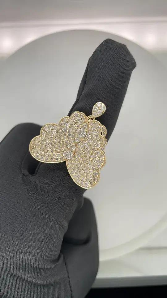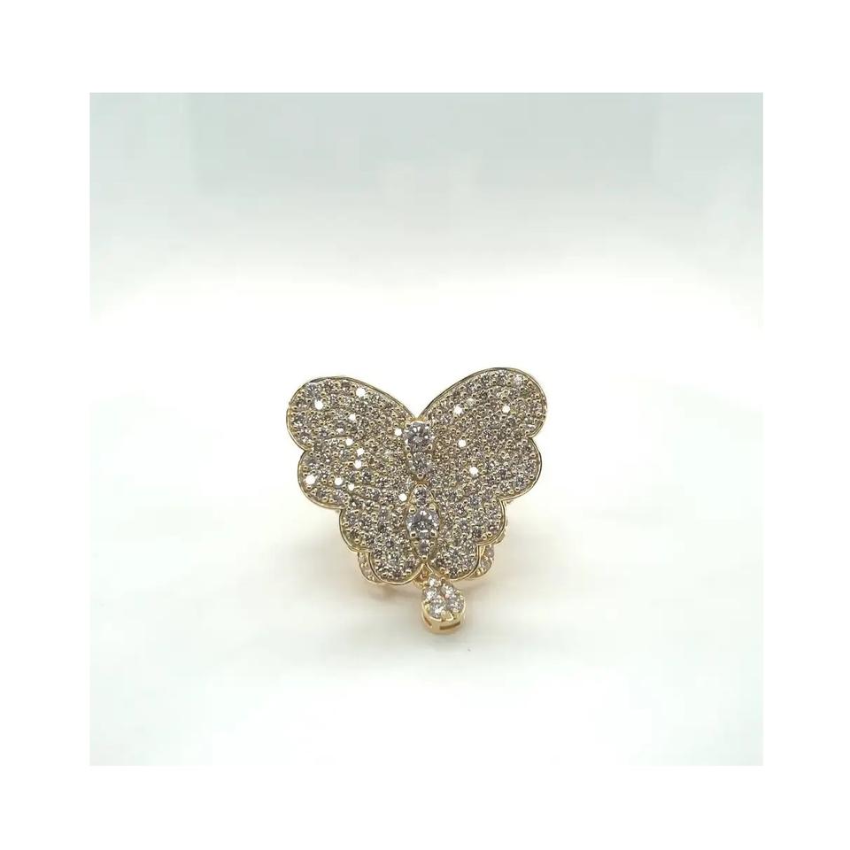 Nouveau design de bague papillon fabriquée en or jaune 14kt diamants cultivés en laboratoire VS SI réglage de canal de pureté pour l'utilisation de cadeaux de bride