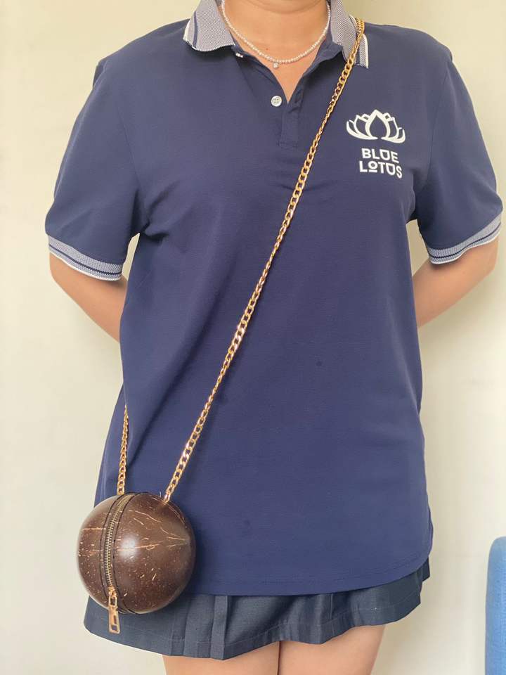 Nouveau Design NOIX DE COCO Sac À Main Fermeture Éclair Tissu Doublé SAC POUR DAMES POUR LES FEMMES COQUILLE DE NOIX DE COCO SAC À MAIN FASHION DE BLEU LOTUS VIET NAM