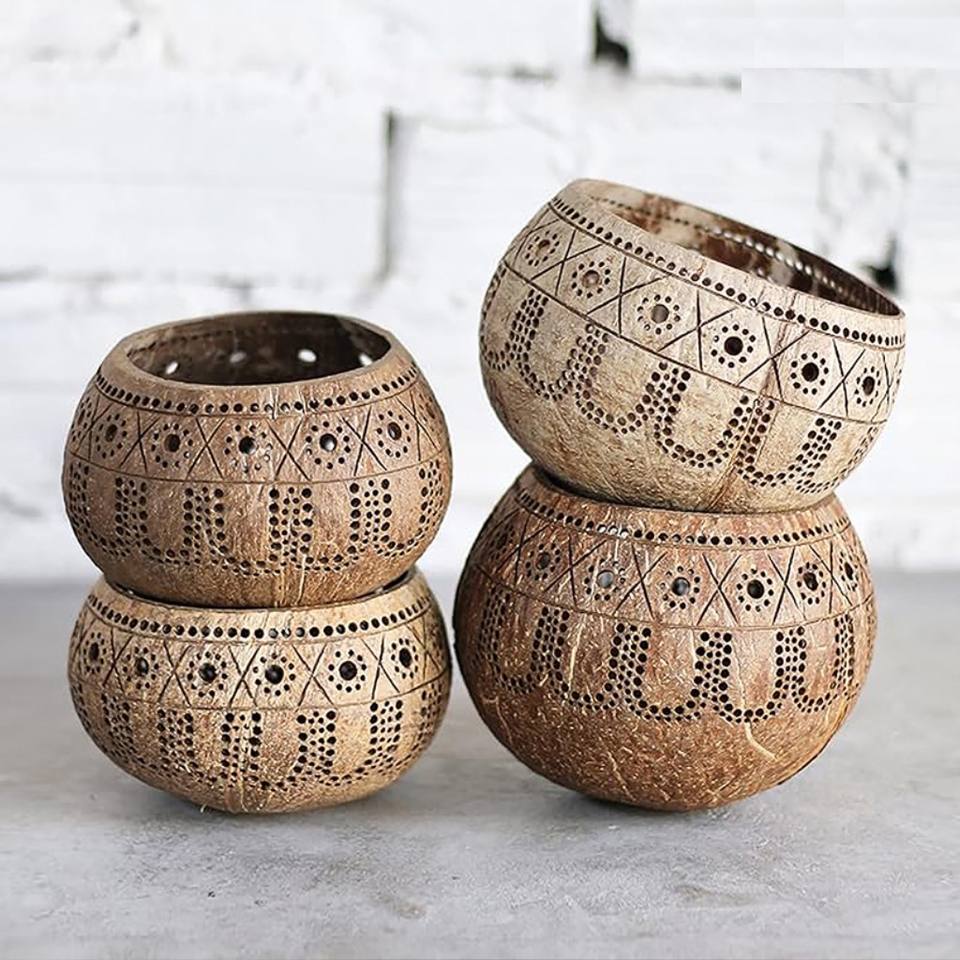 Bougeoir en coquille de noix de coco sculpté nouveau design bol en coquille de noix de coco chauffe-plat fait à la main du Viet Nam