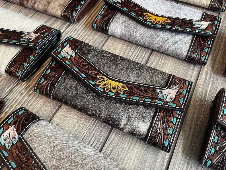 Nouveau Design Sculpture Main Usiné Portefeuille Embrayage Élégant En Cuir Véritable Nouveau Design Portefeuille Multi Utilisations Western Portefeuilles En Cuir