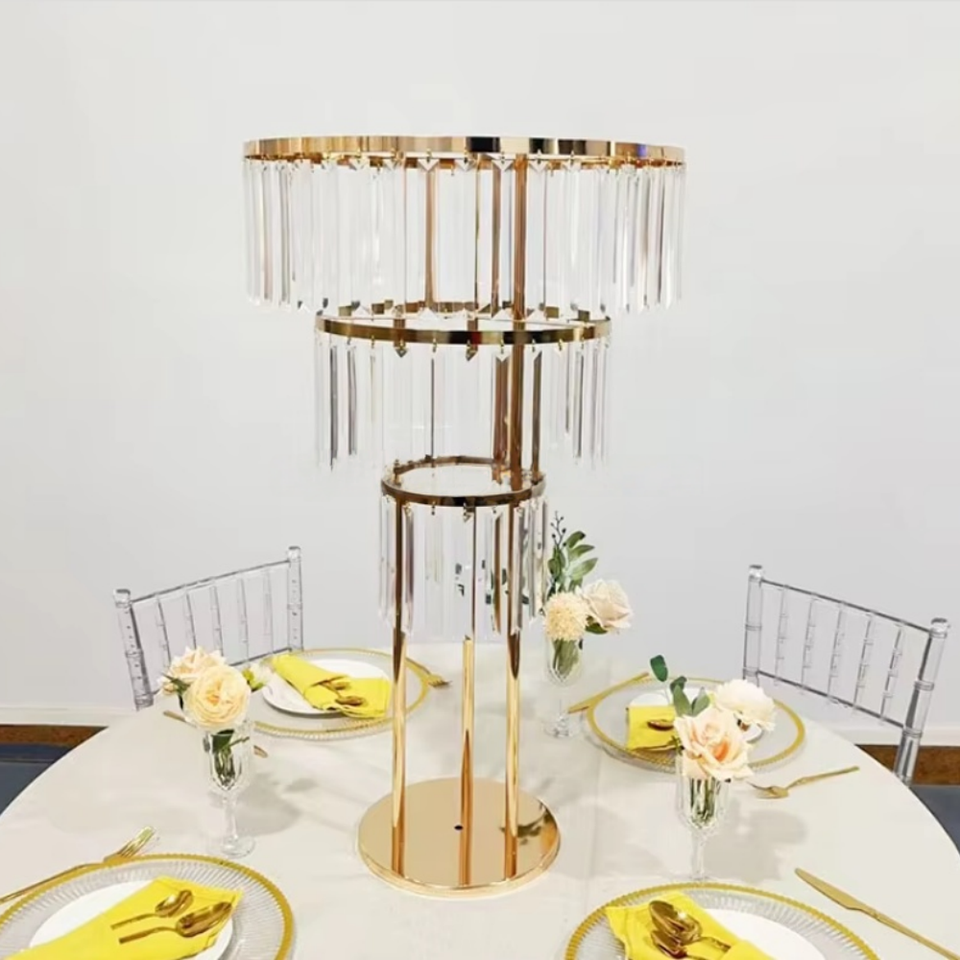 Nouveau design, support à fleurs en métal doré et acrylique, moderne, durable, créatif, pour l'intérieur, facile à assembler, forme personnalisable pour mariage