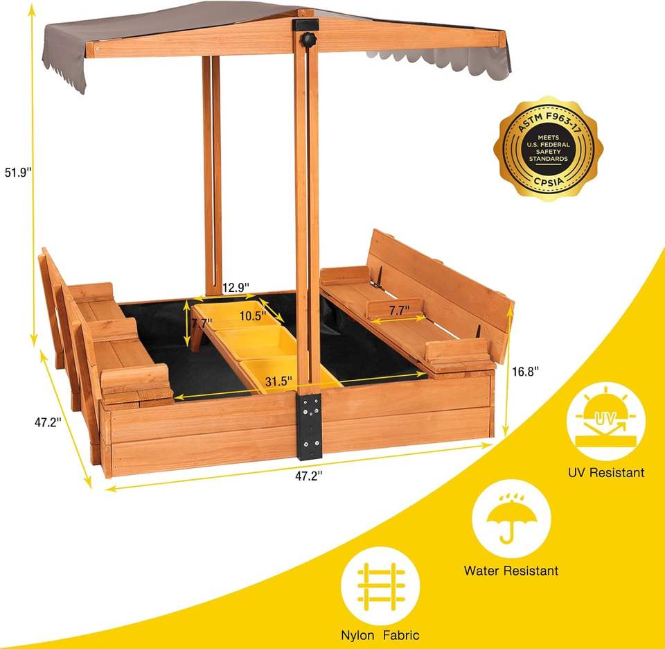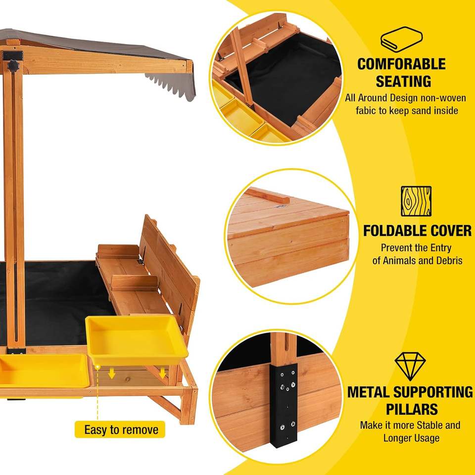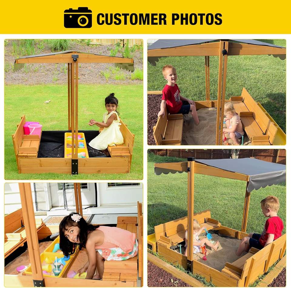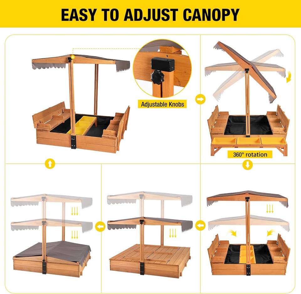 Bac à sable en bois bon marché avec couvercle, grand bac à sable pour enfants en plein air avec auvent réglable, nouveau design