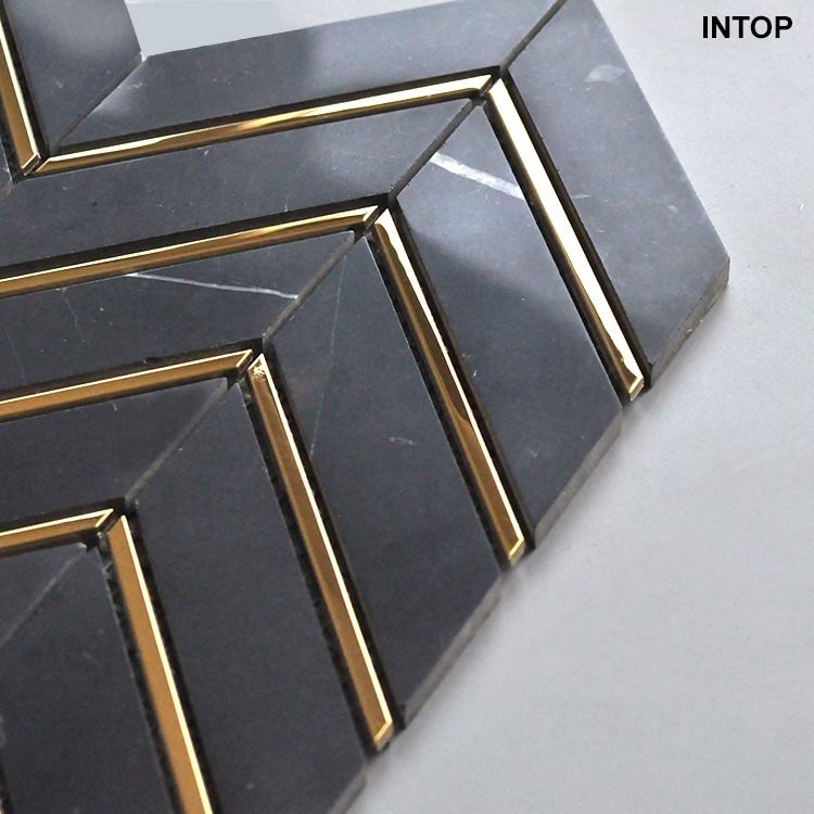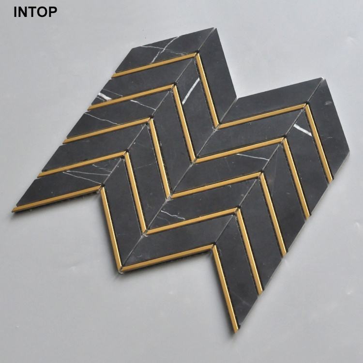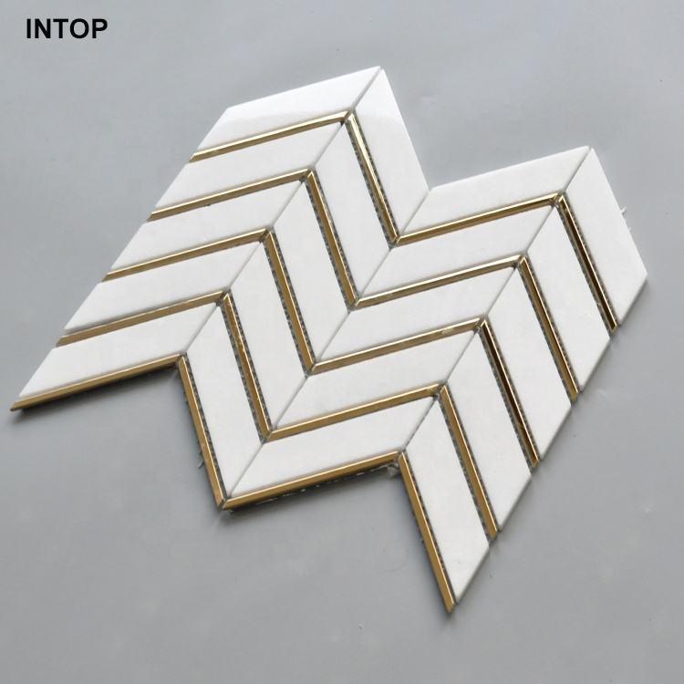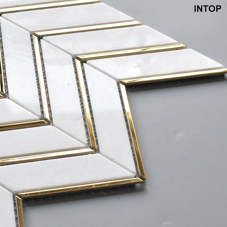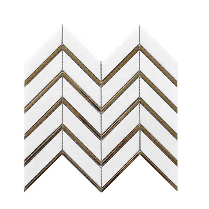 Carrelage mural de mosaïque en marbre et or blanc, nouveau design en chevrons, thassos,