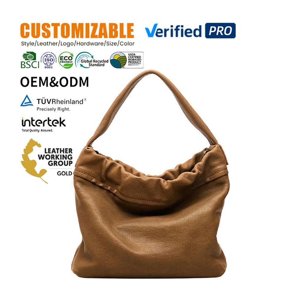 Sac à bandoulière nuage de nouvelle conception, cuir véritable de qualité supérieure, grande capacité, sac fourre-tout plissé, sac sous le bras souple, logo personnalisé, vente en gros OEM