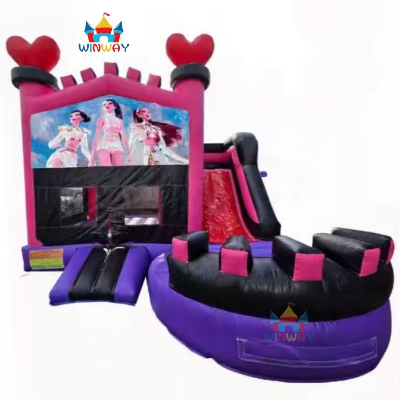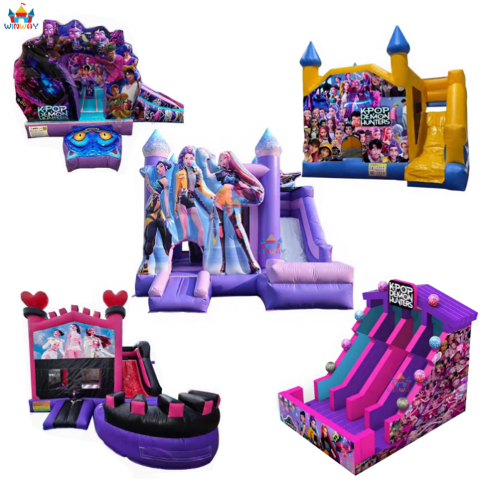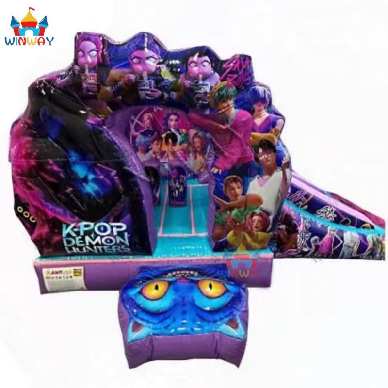 Nouveau design - Château gonflable commercial K-POP style Demon Hunters avec toboggan combiné, en PVC, 5x5 mètres, installation facile