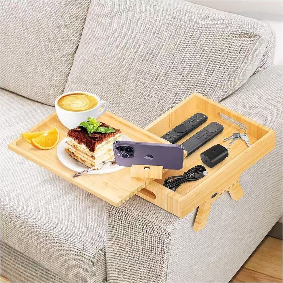 Nom du produit:Organisateur de bras de canapé pliable en bois massif, plateau de bras de canapé