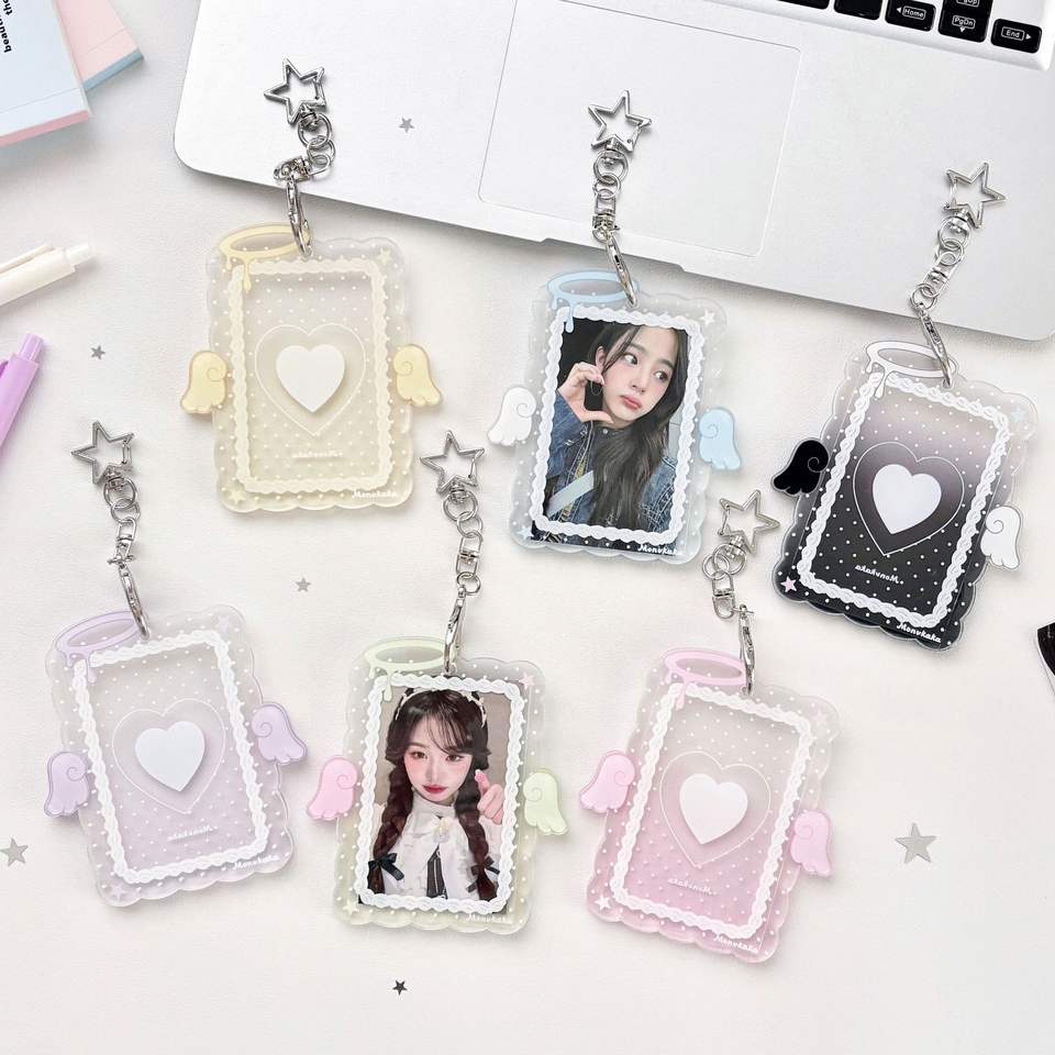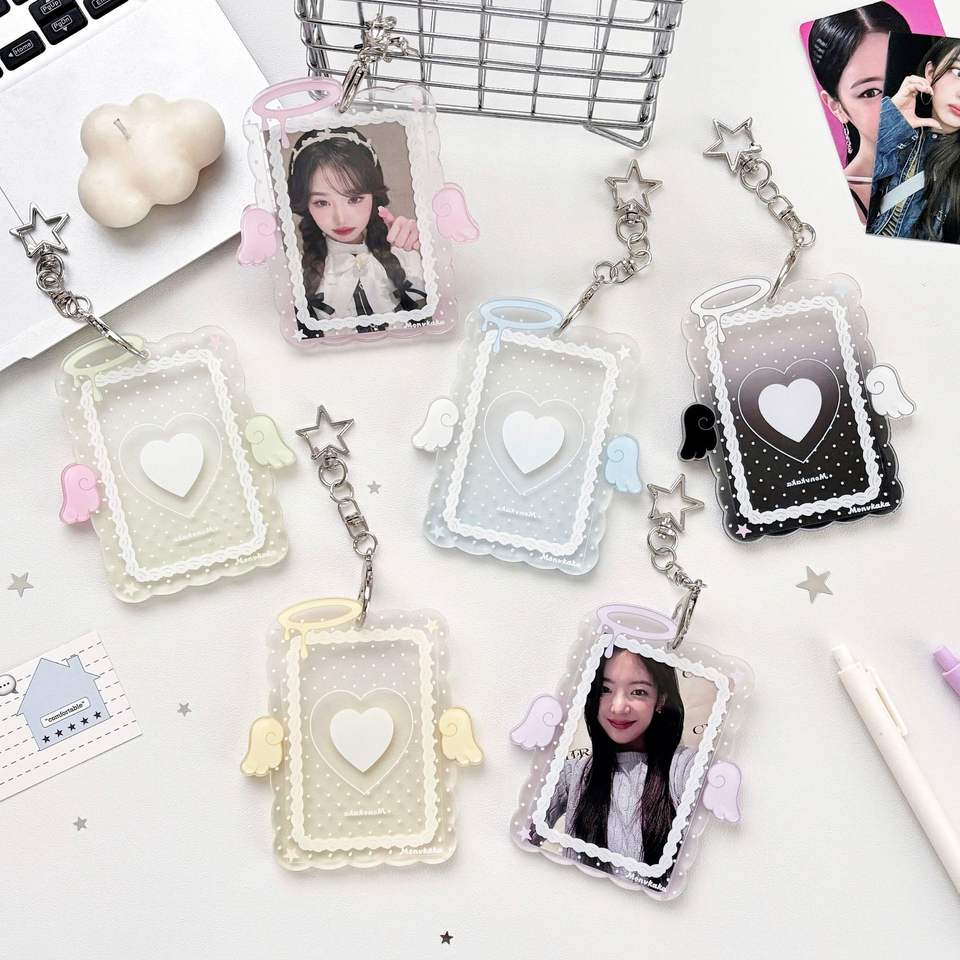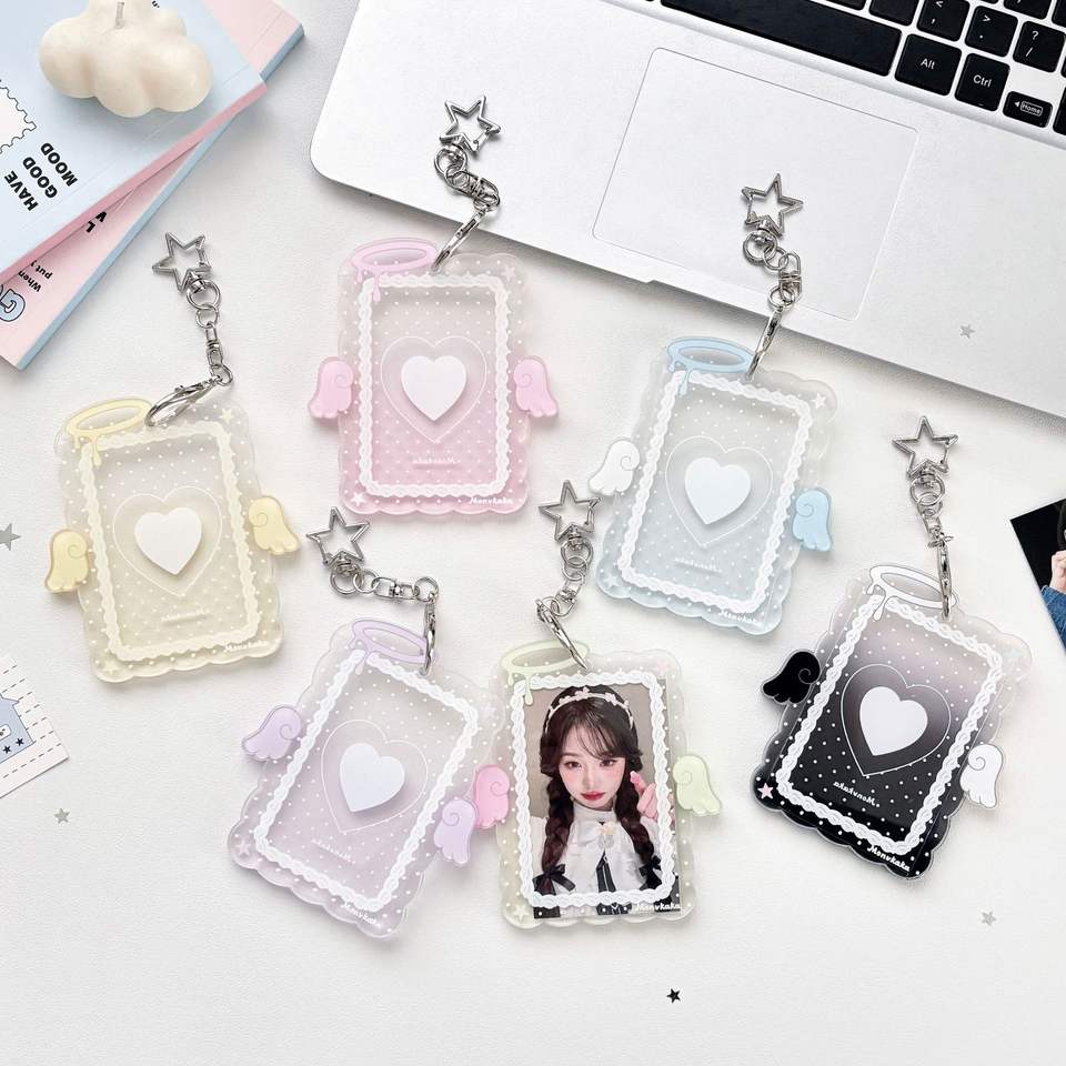 Porte-cartes en acrylique couleur crème avec ailes d'ange, nouveau design - Protège-photos de 3 pouces pour photocards K-Pop et photos instantanées