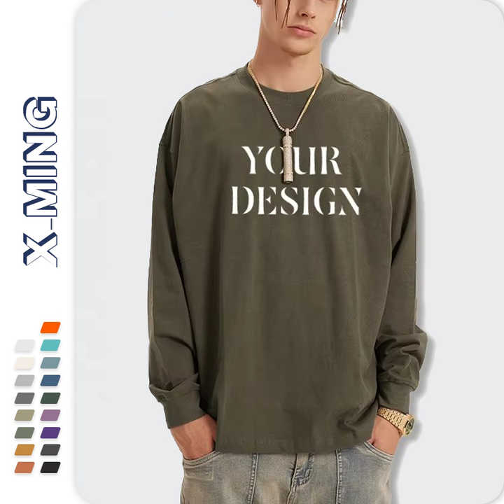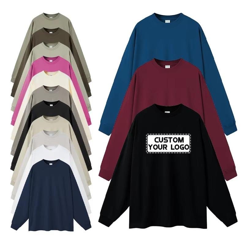 Nouveau design col rond à manches longues 100% coton éponge blanc sweats unisexe personnalisé col rond avec logo imprimé t-shirt pour homme