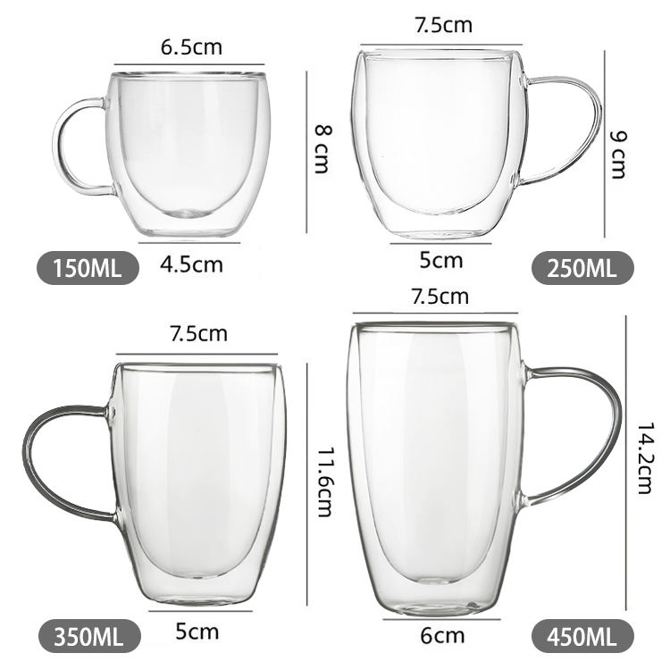 Nom du produit:Tasse en verre à double paroi avec poignée