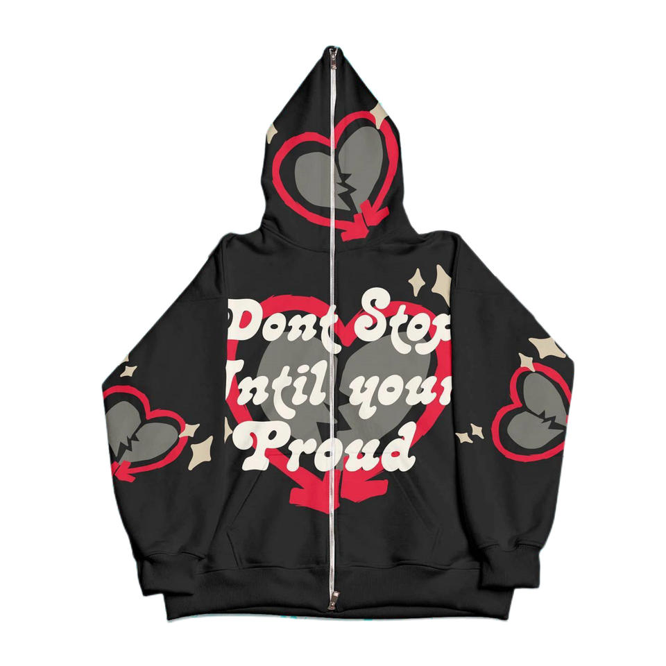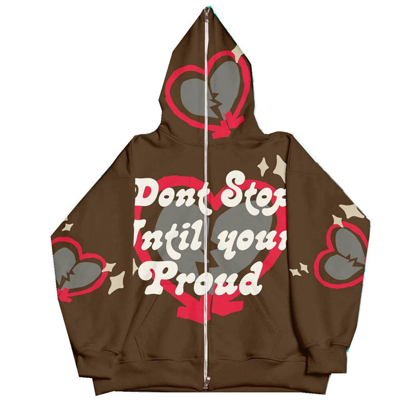 Nouveau design de sweats à capuche pour hommes à col rond Hip Hop avec logo personnalisé, sweat à capuche à fermeture éclair complète imprimé lettre cœur