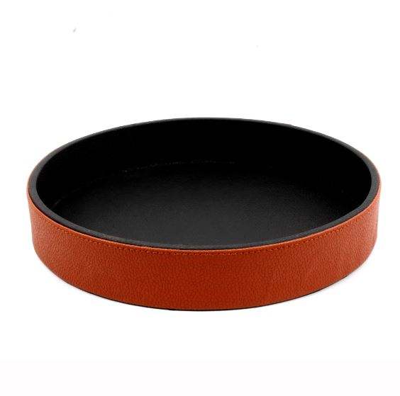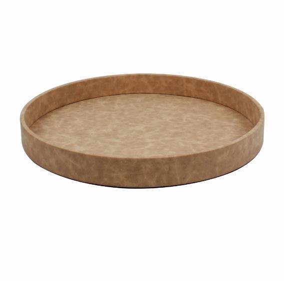 Plateau en bois sur mesure de nouvelle conception avec plateau fantaisie en bois de service d'hôtel et de restaurant monté en cuir marron camel