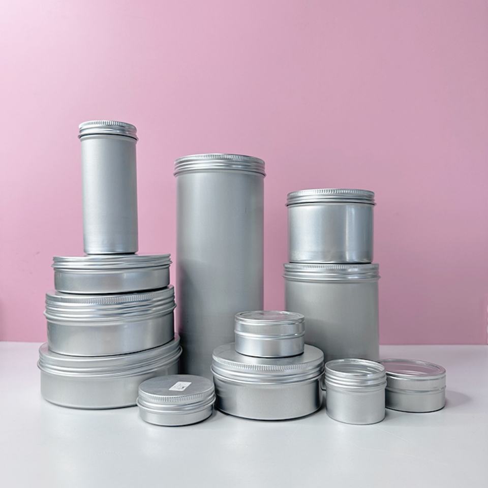 Nouvelle conception, boîte en aluminium pour bougies et thé avec impression personnalisée et couvercles à vis