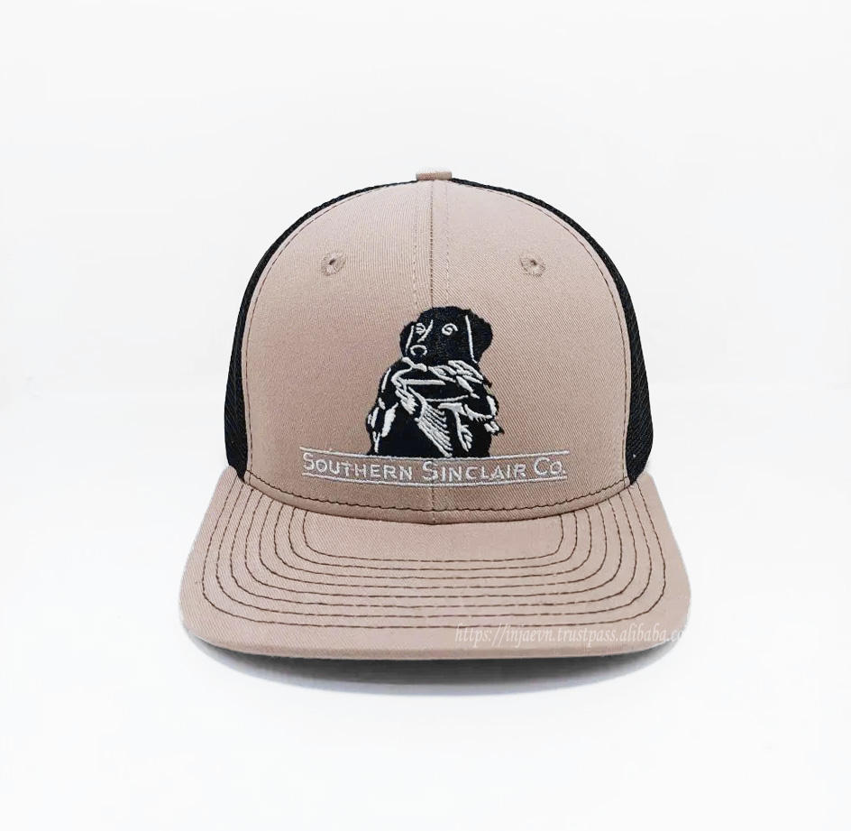 Nouveau design de chapeaux de camionneur avec logo personnalisé broderie chien et texte à plat couleur pastel chapeau de sport structuré à profil moyen