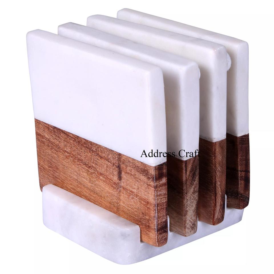 Nouveau design personnalisé style vintage marbre et bois forme carrée sous-verres ensemble bureau fête et restaurant vaisselle vaisselle utilisée