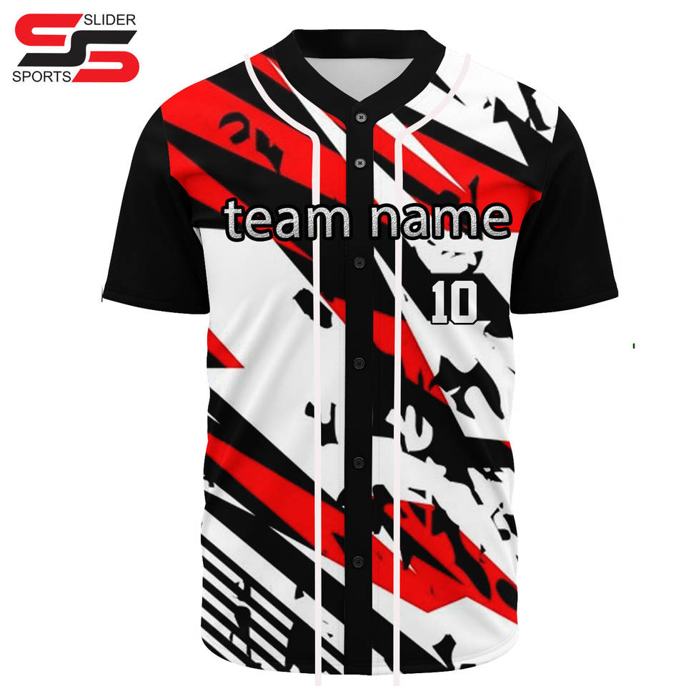 Nouveau design, logo personnalisé, sublimation, broderie en twill, 100% polyester, imprimé, séchage rapide, maillot de baseball pour homme