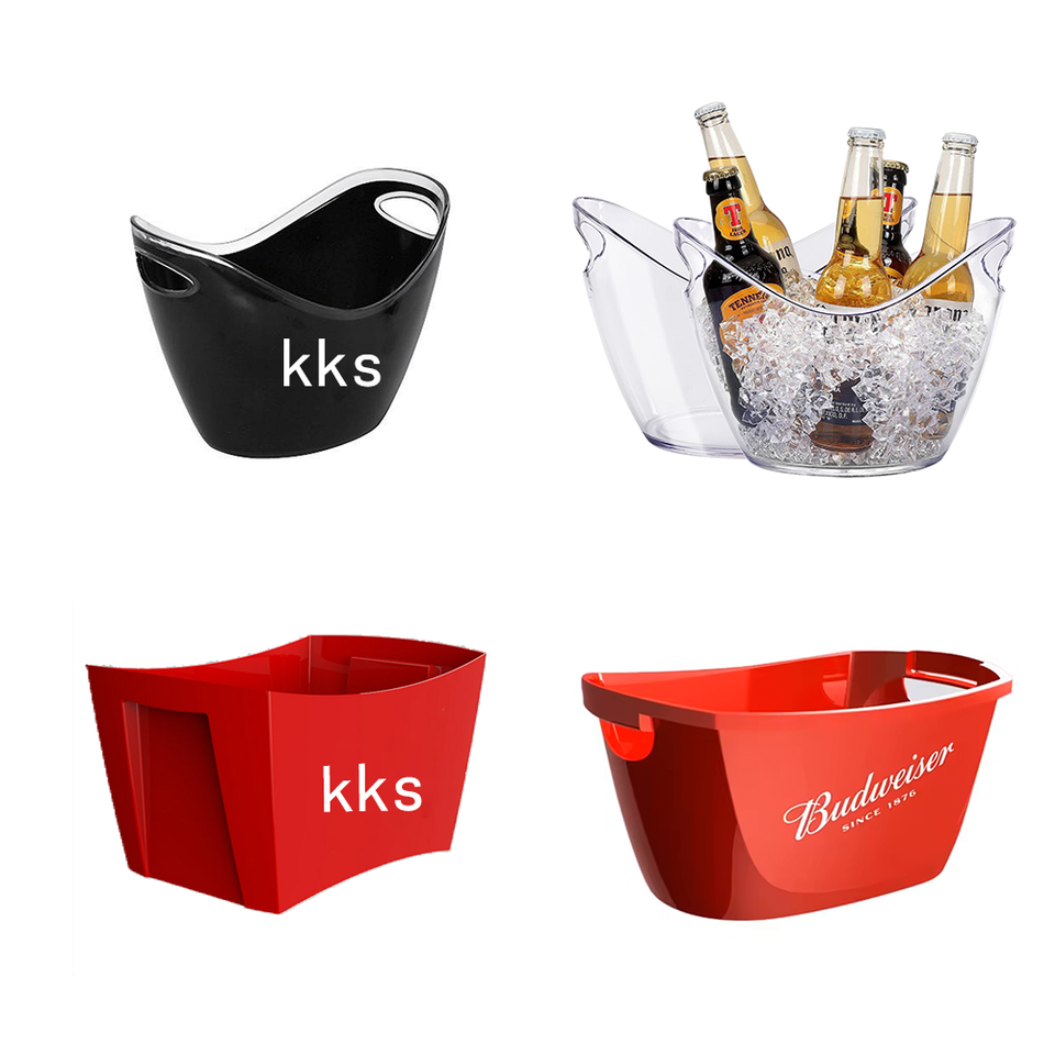 Nouvelle conception, couleur et taille personnalisées, petit seau à glace en plastique transparent à double poignée pour la bière russe Abbey's Erdinger Imperial