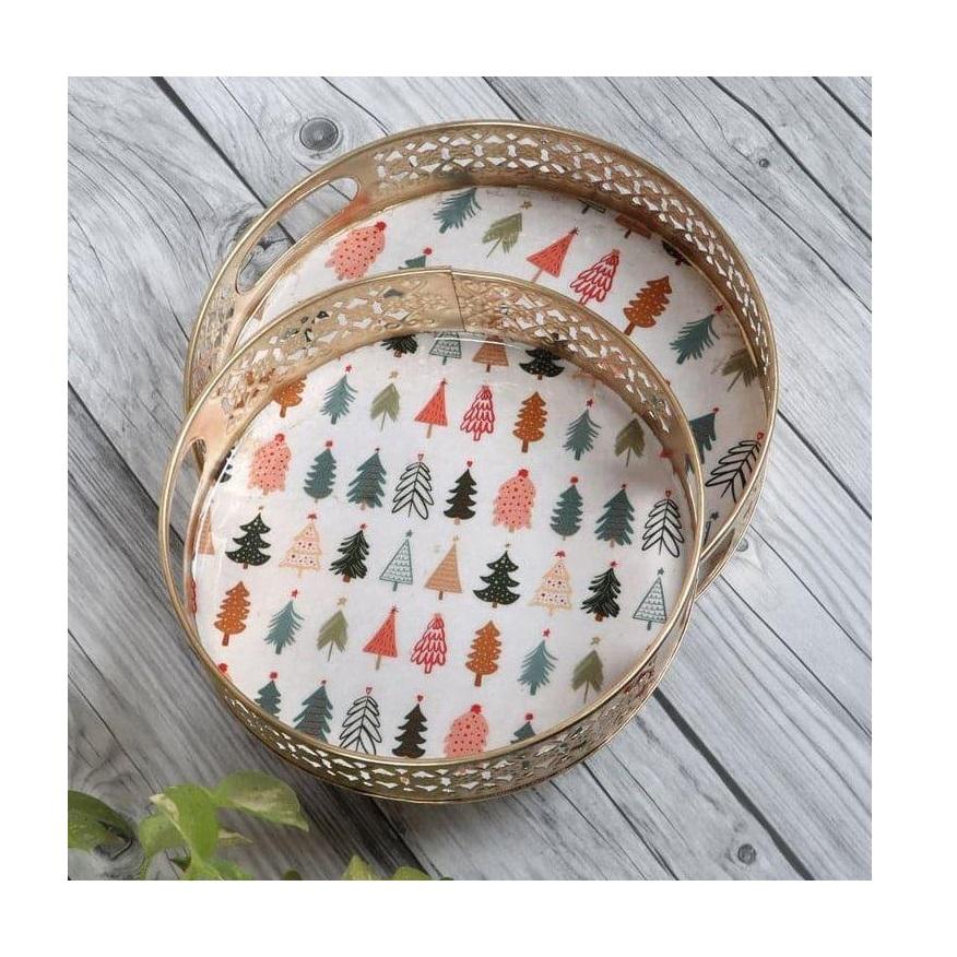 Plateau en acier inoxydable argenté et doré, design personnalisé, pour hôtel, restaurant, thé, café, fruits, plateau de service