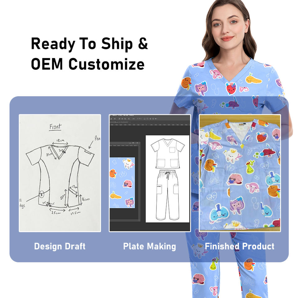 New Design Cute Cartoon Printed Surgical Scrub Tops/Overalls - Breathable & Durable Unisex Medical Uniforms Bulk Supply for B2B