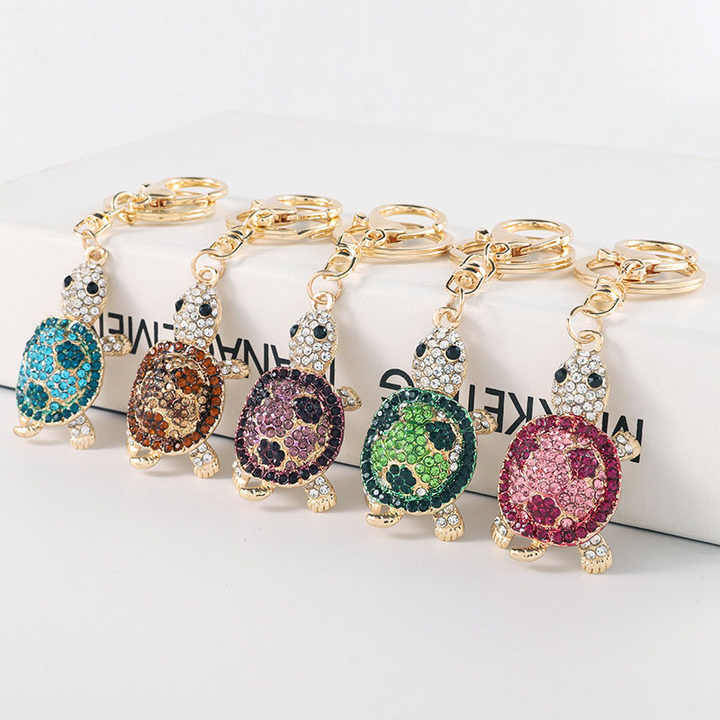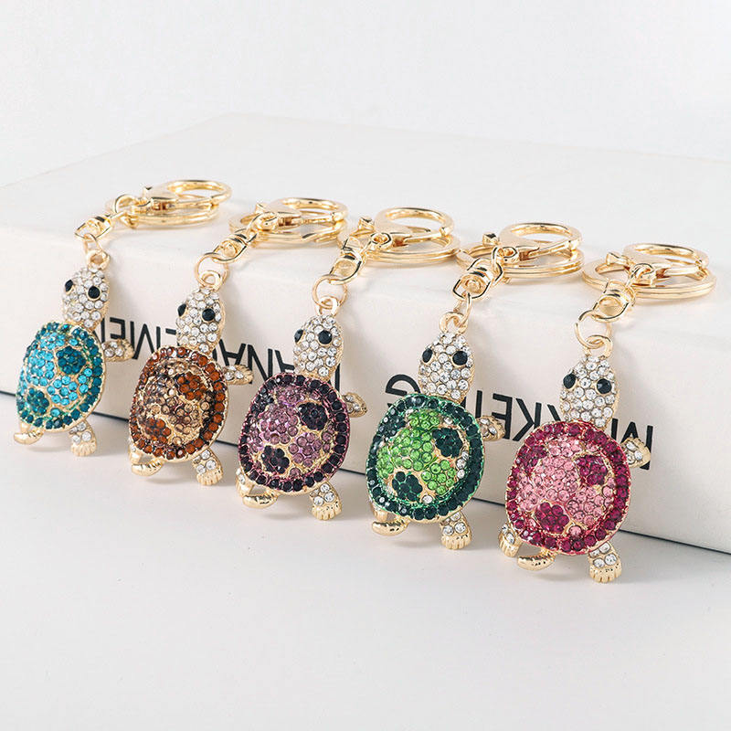 New Design Cute Tourist Beach Souvenir Metal Crystal Keychain 3D Rhinestone Sea Turtle Keychain Laser Free Pin & Pin 1 Color